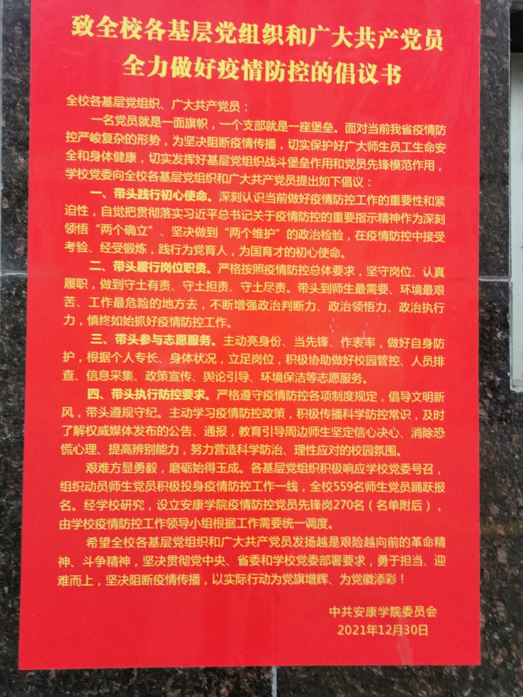 在鲜红党旗的指引下,学校党委迅速行动,在全校疫情防控一线设立“党员先锋岗”,充分发挥基层党组织战斗堡垒作用和党员先锋模范作用,筑牢联防联控、群防群治的疫情防控“红色安全墙”,用“疫”不容辞的硬核担当点燃疫情防控的“红色引擎”, 让党旗在疫情防控一线高高飘扬。