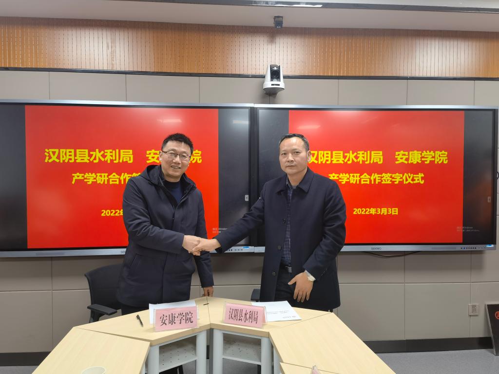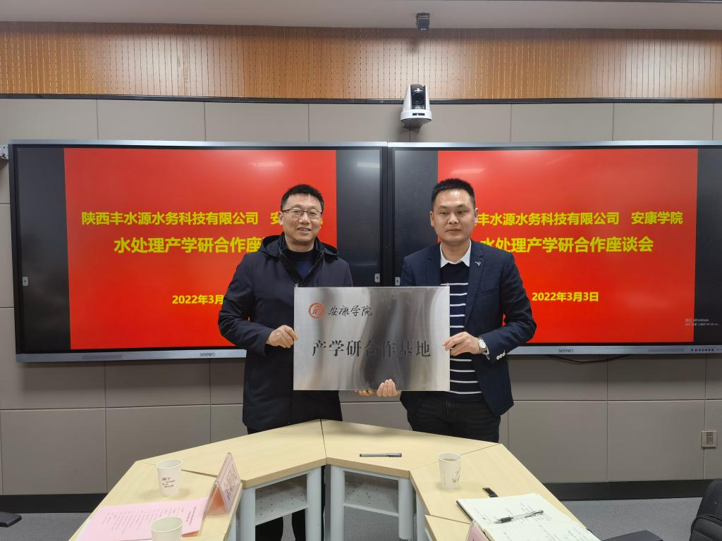 张东红代表学校与汉阴县水利局签订了战略合作协议并授予陕西丰水源水务科技有限公司“ac米兰官方网站产学研合作基地”牌匾。