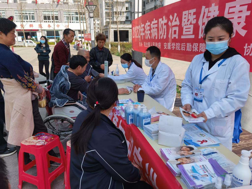 3月11日上午,在当地政府的大力支持下,后勤处工作人员在民主镇明珠社区广场通过LED屏播放健康常识、张贴宣传标语、现场摆放海报展架,为过往群众发传染病防治知识手册等形式开展宣传活动。医务人员为群众讲解妇科病、传染病和慢性病知识、免费筛查血压、接受健康知识咨询,工作人员详细、认真的解答受到群众的一致好评。