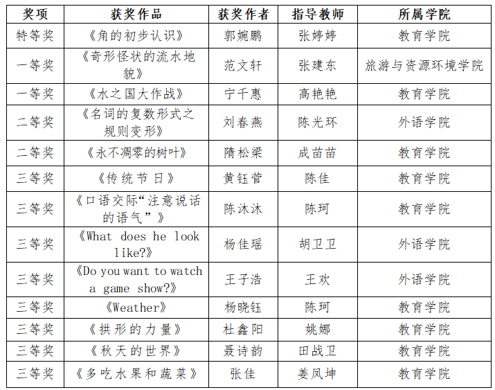 附:“第三届全国师范生微课大赛”ac米兰获奖名单