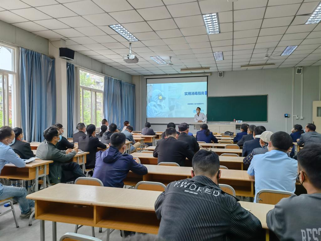 为促进校园消毒工作合理科学和有序开展,有效切断病原体传播途径,4月12日下午,后勤保障处在江南校区1026教室举办了《校园预防性消毒技术规范》专题培训。校医疗保健服务中心医师梁汝江担任主讲,校内服务企业的管理人员和从业人员、相关二级单位负责消毒监管工作人员等40余人到场参加培训。
