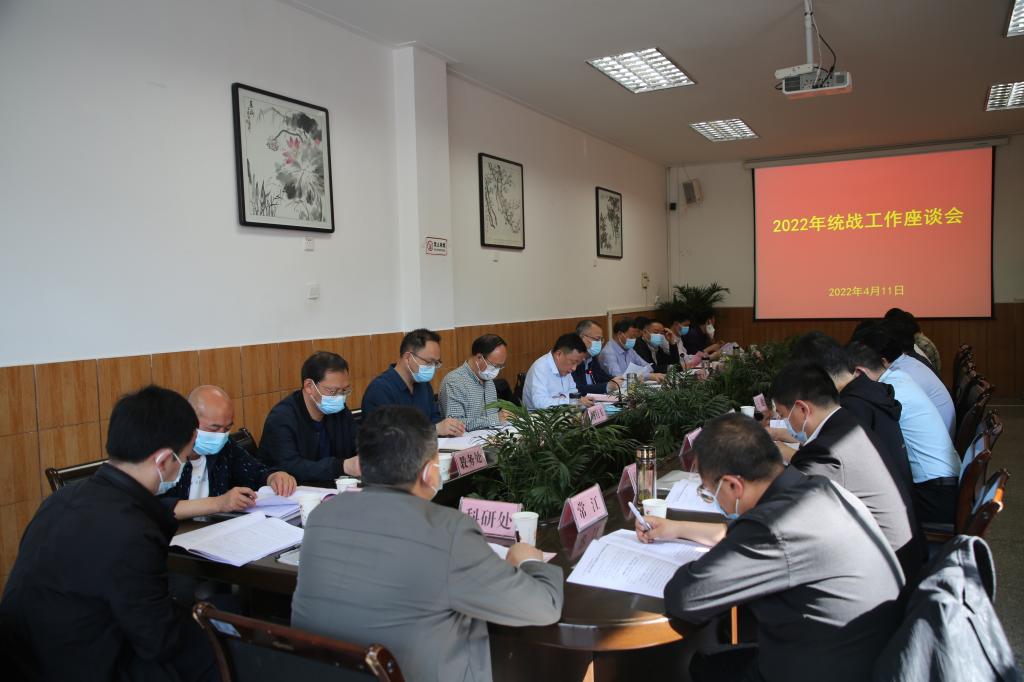 4月11日下午,学校党委在江南校区第一会议室召开2022年度统战工作座谈会。校党委书记丁巨涛,党委副书记、校长钟生海,党委副书记胡波、杨行玉,党委副书记、纪委书记、监察专员安永强出席会议。党委统战工作领导小组职能部门负责人,学校各民主党派负责人,无党派代表人士,学校留联会、知联会、侨联等统战团体负责人及市级以上人大代表、政协委员等参加了座谈会。会议由胡波主持。