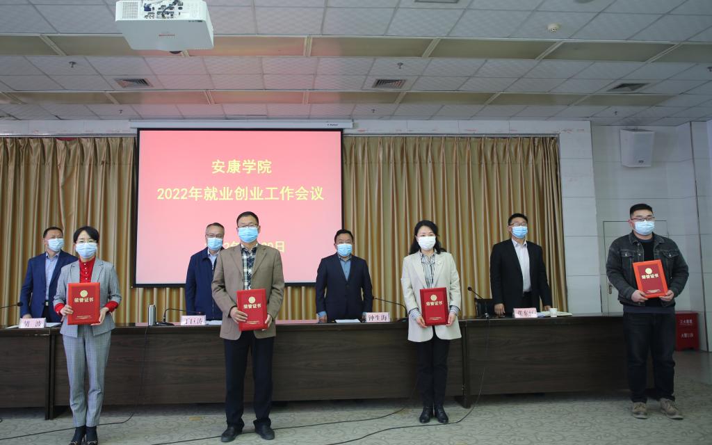 胡波宣读了陕西省教育厅《关于表彰2021年陕西省高校就业工作先进单位和先进个人的通知》《ac米兰官方网站关于表彰2021年度就业创业工作先进集体、先进个人的决定》。学校领导为受表彰的先进集体和个人代表颁发了荣誉证书。