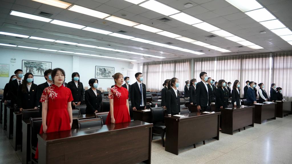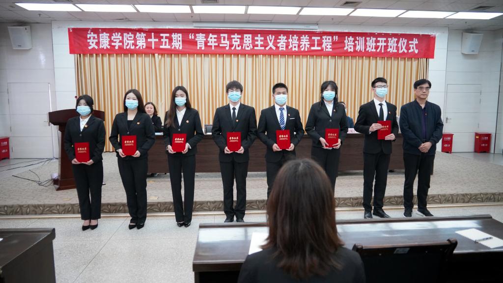 开班仪式在雄壮的国歌声中拉开帷幕,学工部部长李岩宣读了《关于学习贯彻习近平新时代中国特色社会主义思想暨第十四期“青马工程”与学生干部骨干培训班考核结果的通报》,并为优秀学员颁发证书;学工部副部长钟泽斌宣读了第十五期“青马班”课程安排与参训纪律;宣传部部长鲁延安为新学员代表佩戴学员证;艺术学院2019级视觉传达设计2班学生沈冰作为第十四期优秀学员代表发言;文传学院2020级网络与新媒体1班学生何蓉作为第十五期新学员代表做表态发言。