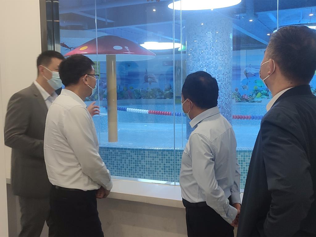 在安体产业公司总经理李聪引导介绍下,调研组参观了城投安体运动中心菲斯敏游泳馆、菲斯特健身俱乐部、菲斯派亲水乐园、菲斯腾羽毛球(篮球)馆、运动商品中心以及轻食餐厅,并听取了场馆内各项运动项目与2021年度运营状况的介绍。