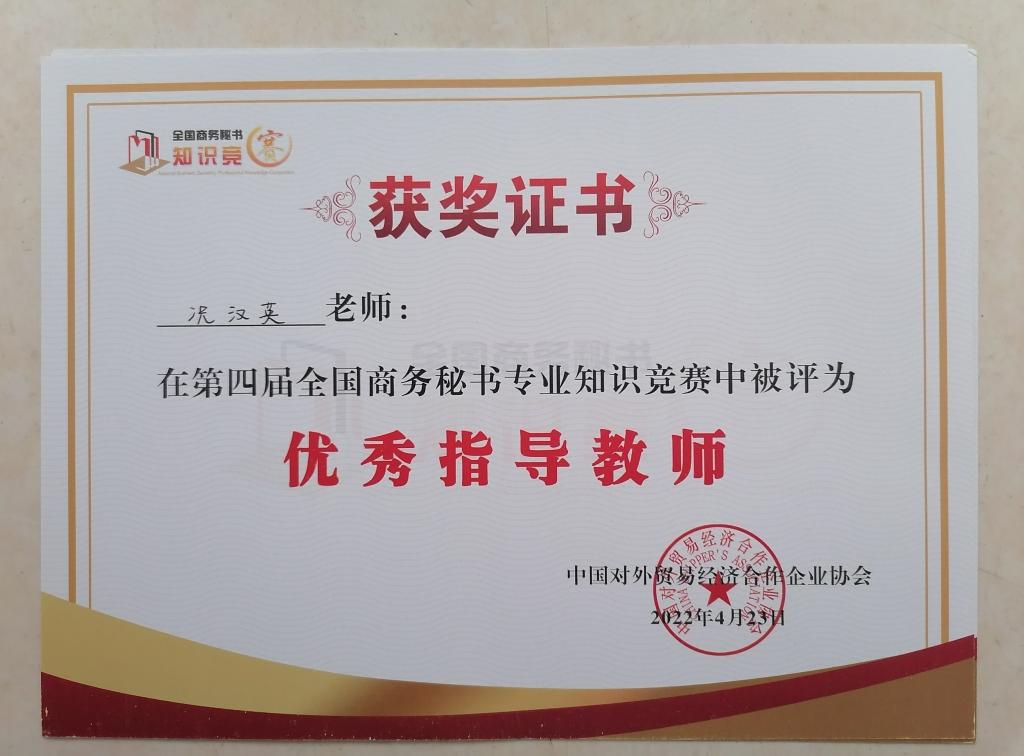 近日,中国对外贸易经济合作企业协会公布了第四届全国商务秘书专业知识竞赛获奖名单,ac米兰文传学院秘书学专业学生再创佳绩。郭杨荣获一等奖,张雪怡等5名学生荣获二等奖,佘海茹等17名学生荣获三等奖,耿世杰等11名同学通过资格认定获“高级商务秘书证书,ac米兰官方网站获竞赛“优秀组织奖”,文传学院教师况汉英获“优秀指导教师”称号。