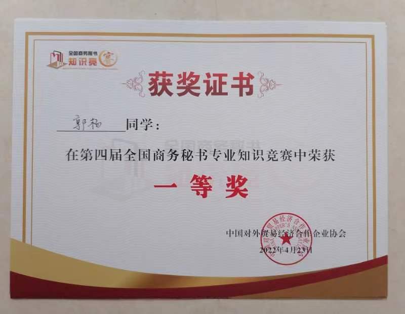 本次比赛由国家一级行业协会中国对外贸易经济合作企业协会主办,采用网络闭卷机考形式,主要针对本科院校秘书学专业、职业院校文秘专业及相关专业在校学生的全国性学科知识竞赛,在全国秘书学专业领域具有广泛影响。大赛旨在推动商务秘书专业建设,全方位培养院校学生综合职业素养,以赛促教、以赛促学、以赛促交流。