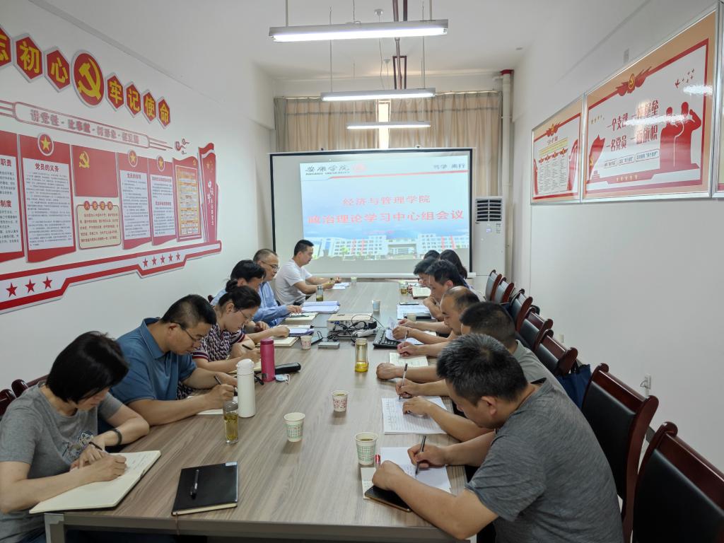 6月8日,经管学院党总支理论学习中心组在江北校区逸夫科技楼召开政治理论学习会,党委书记丁巨涛到会旁听指导。经管学院班子成员、党总支委员、“两办”主任、各党支部书记、团总支书记等中心组成员参加学习会。会议由党总支书记李成仙主持。