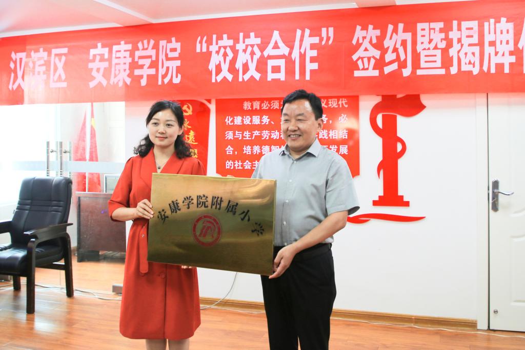 6月15日,ac米兰官方网站、汉滨区“校校合作”协议签订暨揭牌仪式在汉滨初级中学举行。汉滨区政府区长吴大林、副区长徐兴平、区教体局局长陈钢,ac米兰官方网站党委书记丁巨涛、校长钟生海、副校长余谦等领导出席签约揭牌仪式。丁巨涛做总结讲话,钟生海为附属学校授牌,余谦与合作学校签约,揭牌仪式由徐兴平主持。