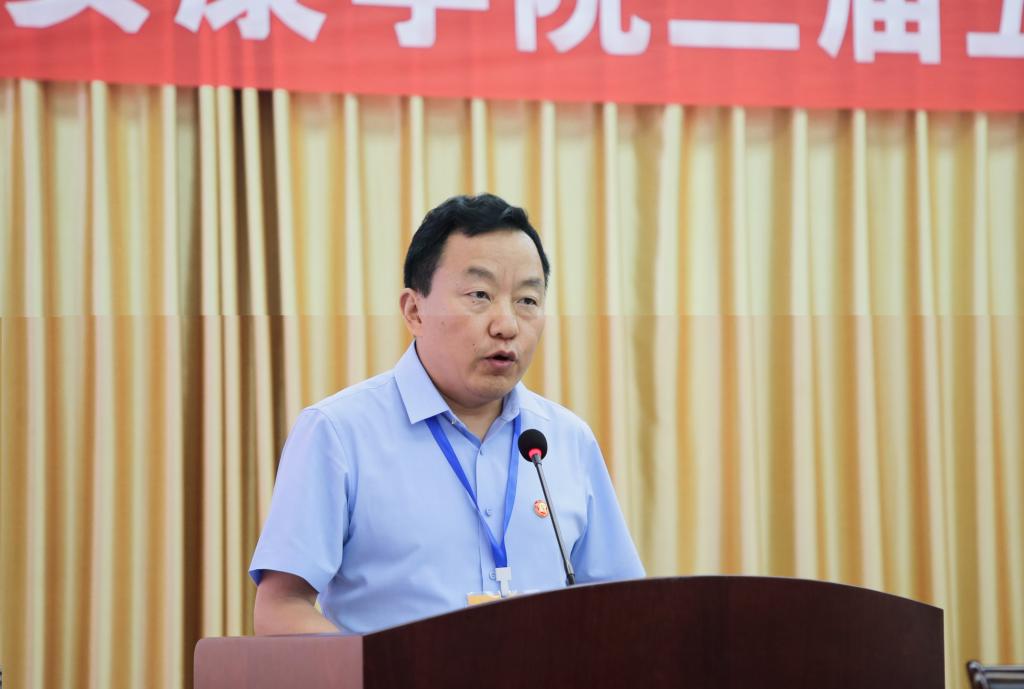 钟生海向大会做《学校工作报告》。报告从六个方面总结回顾了2021年学校各项工作,肯定了所取得的成绩,对全校教职工在各自的岗位上为学校各项事业发展所做出的辛勤努力表示衷心感谢,并客观分析了工作中存在的不足和困难,部署2022年下半年重点工作。为进一步做好学校各项工作,钟生海要求:一要加强政治建设,充分发挥党建引领作用。认真贯彻落实新时代党的建设总要求和全国高校党建工作会议精神,以政治建设为统领,不断提高党建工作质量,深入推进学校党建工作与业务工作深度融合。深化全面从严治党,营造风清气正的育人氛围,以高质量党建引领、保障和推动学校事业高质量发展。二要聚焦重点狠抓落实,提升内涵建设水平。紧盯教育教学、学科建设与科学研究、服务地方工作、师资队伍建设等方面的重点工作,狠抓落实,奋力推进学校事业再上新台阶。三要提升内部治理能力,保障学校事业高质量发展。以学校章程修订为契机,深化依法治校,不断提升学校内部治理水平。强化法治宣传教育,进一步提升学校管理服务工作的规范化、法治化水平,为学校事业高质量发展提供保障。