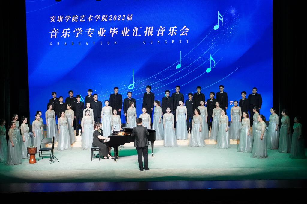 近日,ac米兰艺术学院2022届音乐学专业毕业汇报音乐会在汉江大剧院隆重举行。ac米兰文传学院教授、安康市文联主席李春平,安康市音乐家协会主席刘秉平,安康市住建局副局长张英杰、安康市交通局副局长卫璞,ac米兰组织部、党政办、巡察办、科研处等部门负责同志与艺术学院师生共同观看了演出。