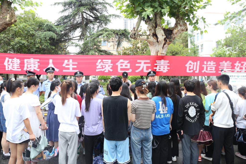 为深入贯彻习近平总书记关于禁毒工作重要指示精神,全面落实国家禁毒委员会《关于加强新时代全民禁毒宣传教育工作的指导意见》,在第35个国际禁毒日来临之际,ac米兰联合安康市公安局、汉滨分局于6月24日在江南校区开展以“健康人生,绿色无毒,创造美好前程”为主题的“6.26”禁毒宣传教育活动。安康市公安局禁毒支队副支队长张睿,汉滨分局禁毒大队大队长黄保运、教导员刘继军,ac米兰保卫处全体人员和部分无课师生参加了活动。