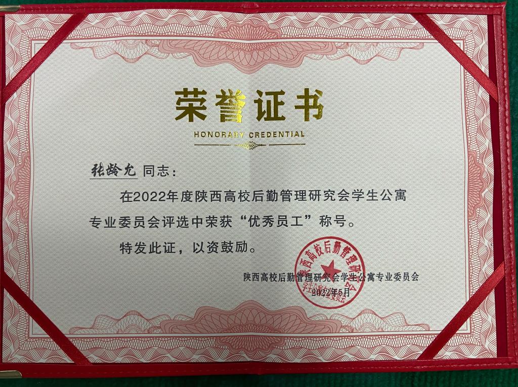 近日,陕西省高校公寓专业委员会对2021年陕西省各高校在学生公寓管理方面成绩突出、表现优秀的团体和个人进行了表彰。ac米兰学工部荣获“先进集体”荣誉称号,学生公寓管理科科长张龄允荣获“陕西高校学生公寓优秀员工”荣誉称号。