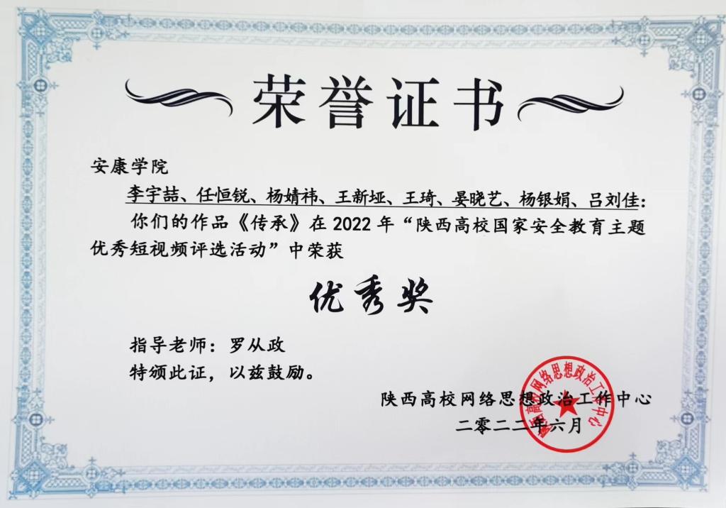 近日,由陕西高校网络思想政治工作中心主办的“2022年陕西高校国家安全教育主题优秀短视频评选活动”结果揭晓,ac米兰易班发展中心推荐的学生作品《抵制“罪恶之花”,守护青春家园》《传承》分别荣获三等奖和优秀奖。
