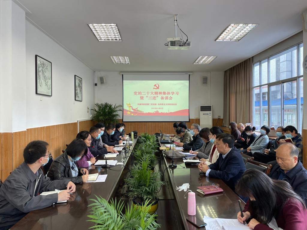 11月2日下午,马克思主义学院党总支、直属二党支部在第一会议室召开党的二十大精神集体学习暨“三进”备课会。校党委副书记、纪委书记、监察专员安永强,组织部部长屈险峰作交流发言,马克思主义学院全体教职工参会。