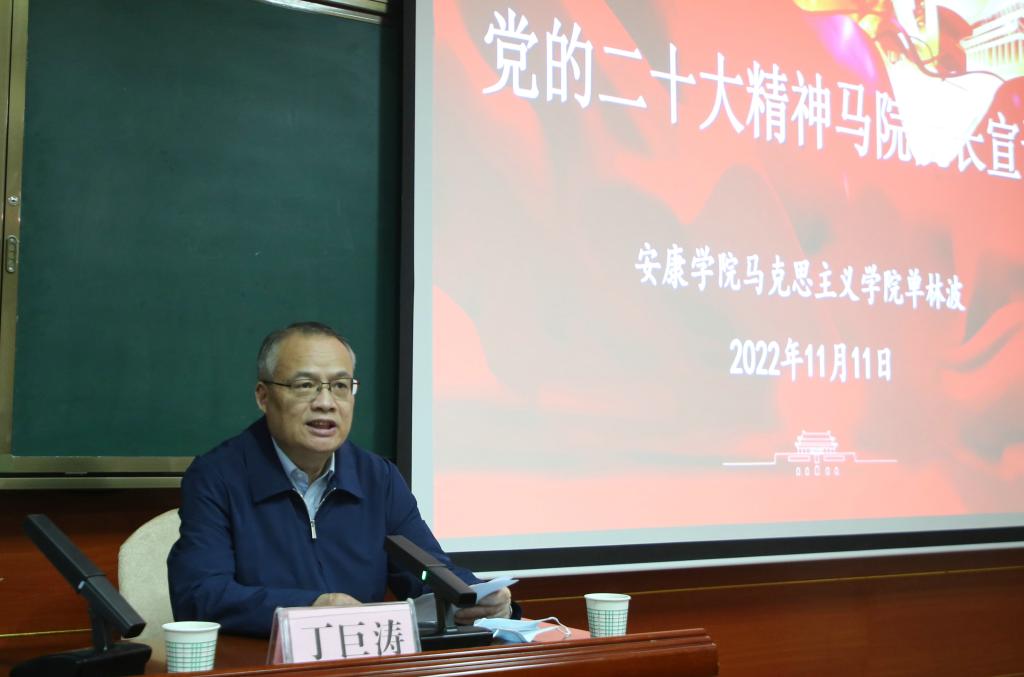 为深入学习宣传贯彻党的二十大精神,根据省委统一安排,11月11日下午,ac米兰在江南校区1018教室举行学习宣传贯彻党的二十大精神宣讲报告会。省党的二十大精神“马院院长宣讲团”成员,ac米兰马克思主义学院院长单林波作宣讲报告。校党委书记丁巨涛主持报告会。