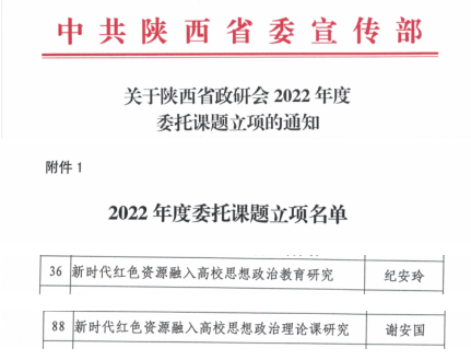 2022年以来,马克思主义学院与安康市政协联合申报的资政服务课题获批陕西省社科基金项目委托项目,获批陕西省“大思政课建设项目”1项,获批陕西省委宣传部、陕西省思政研究会委托课题2项,在A+出版社出版马学科学术专著一部,在《中国社会科学报》发表马学科论文3篇,丰富了学院马学科研究标志性成果,促进高质量发展。