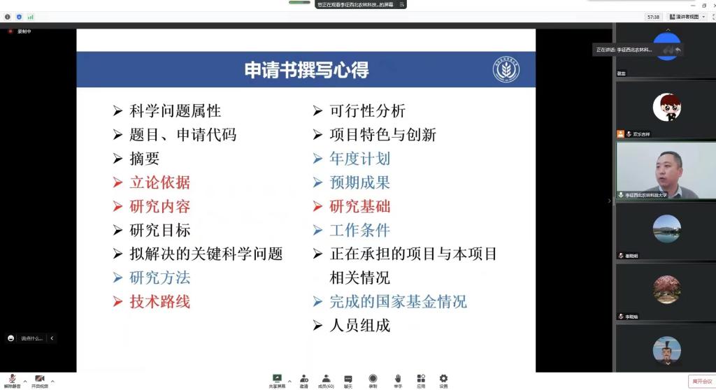 李征教授结合自身申报历程和经验,从申报国家自然基金的前期准备工作、申请书撰写心得、如何参考函评意见修改申请书等方面深入剖析了国家自然科学基金项目申报的策略。
