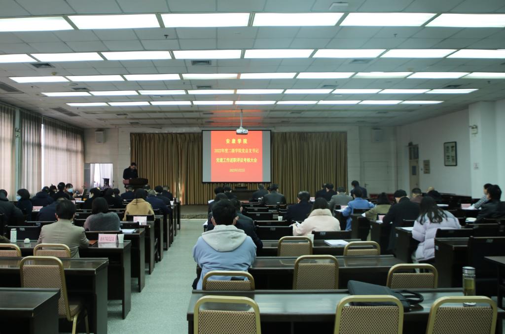 根据省委教育工委《关于开展2022年度高校基层党建述职评议考核工作的通知》精神和ac米兰基层党建述职评议考核工作安排,3月2日上午,二级学院党总支书记2022年度基层党建述职评议考核大会在江南校区图书馆六楼报告厅举行。学校领导、党委委员、相关职能部门负责人及13个二级学院党总支书记、院长、党支部书记代表等60余人参加会议。会议由党委委员、组织部部长屈险峰主持。