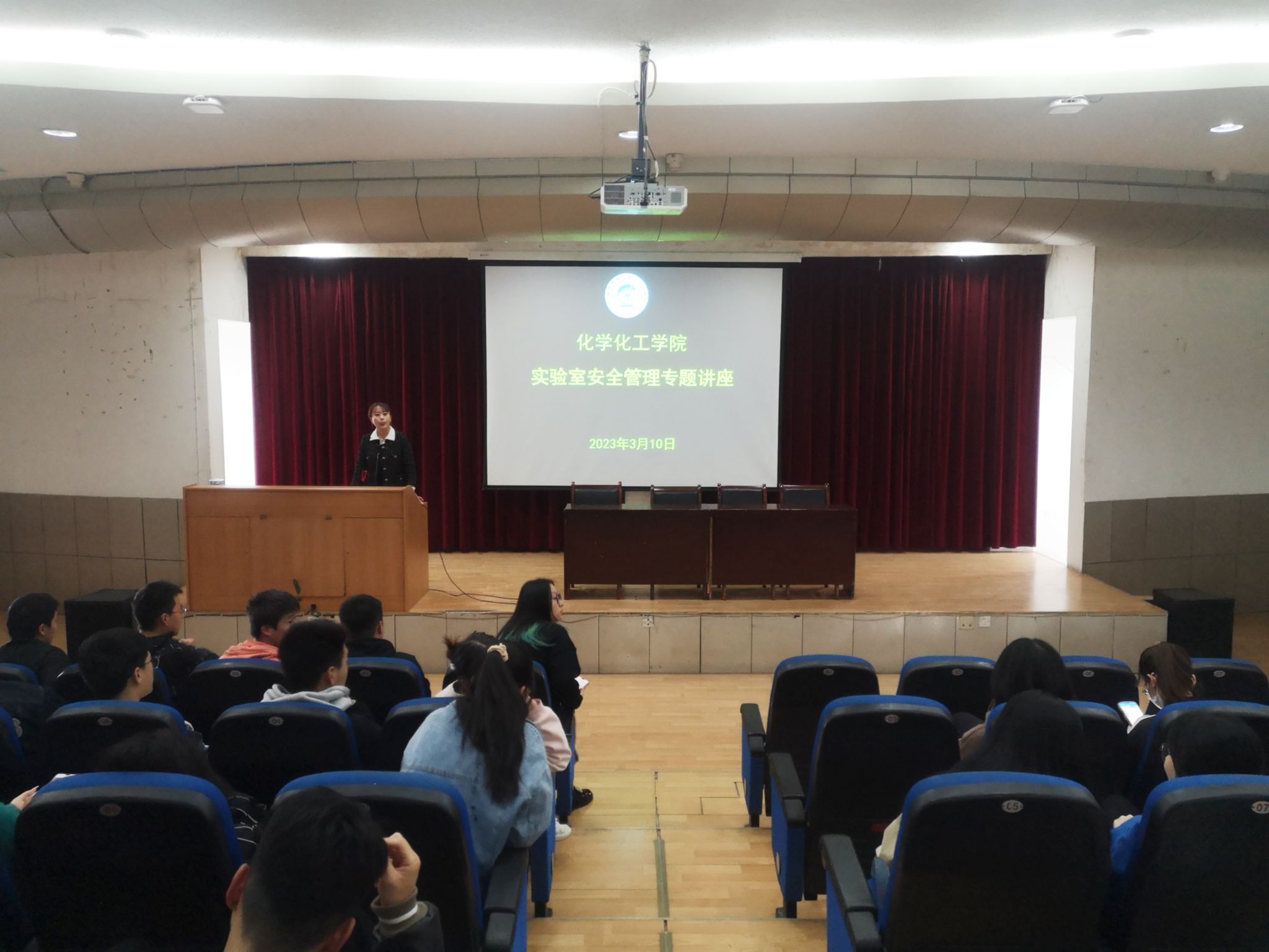 报告中,刘涛以几起高校实验室安全事故为例,从人员不安全行为、物品不安全状态和环境不安全条件等方面,具体阐述了实验室安全事故发生的原因,并从实验室区域行为规范、危险化学品的储存保管、有毒有机溶剂使用、气体钢瓶存放、实验室用电等方面向师生们普及了实验室安全知识,师生现场参与互动,反应热烈。