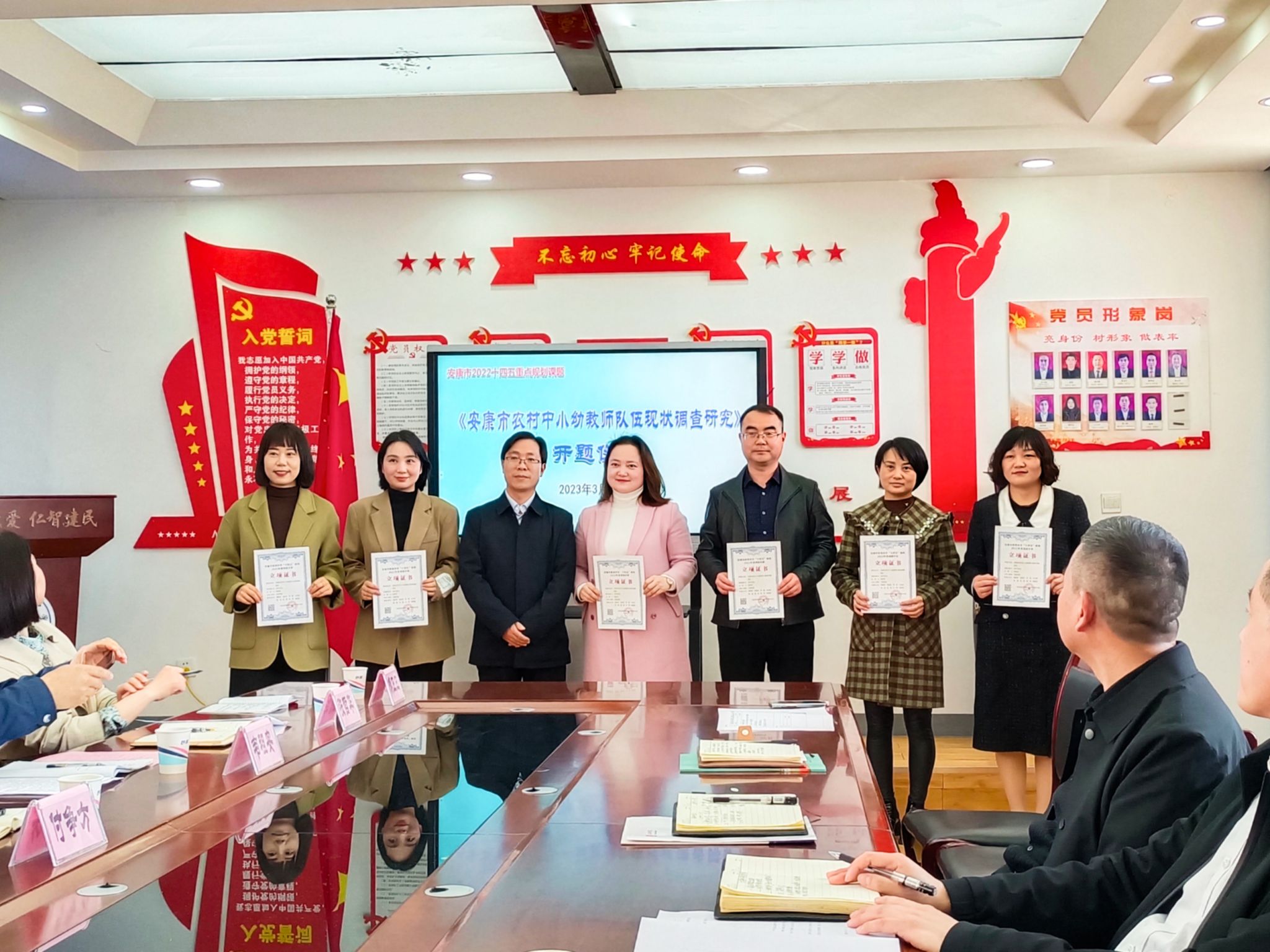 随后,全体与会人员参加了由张哲华主持的安康市2022十四五重点规划课题《安康市农村中小幼教师队伍现状调查研究》的开题仪式。张哲华宣读了立项通知并为课题组成员颁发立项证书。课题组成员陈璠从研究背景、核心概念、研究内容、研究目标、研究步骤和预期成果等方面做了开题汇报。课题组指导专家韦祖安、安康市教研室教研员王颖从课题选题、研究价值、研究目标、研究内容、研究思路方法等方面进行了精彩点评,为课题研究提供了动力,指明了方向。课题组成员在交流发言中一致表示,将恪守学术规范,加强学习反思,提升理论素养,坚持以研促学、以研促教,团结协作,确保课题顺利结题。