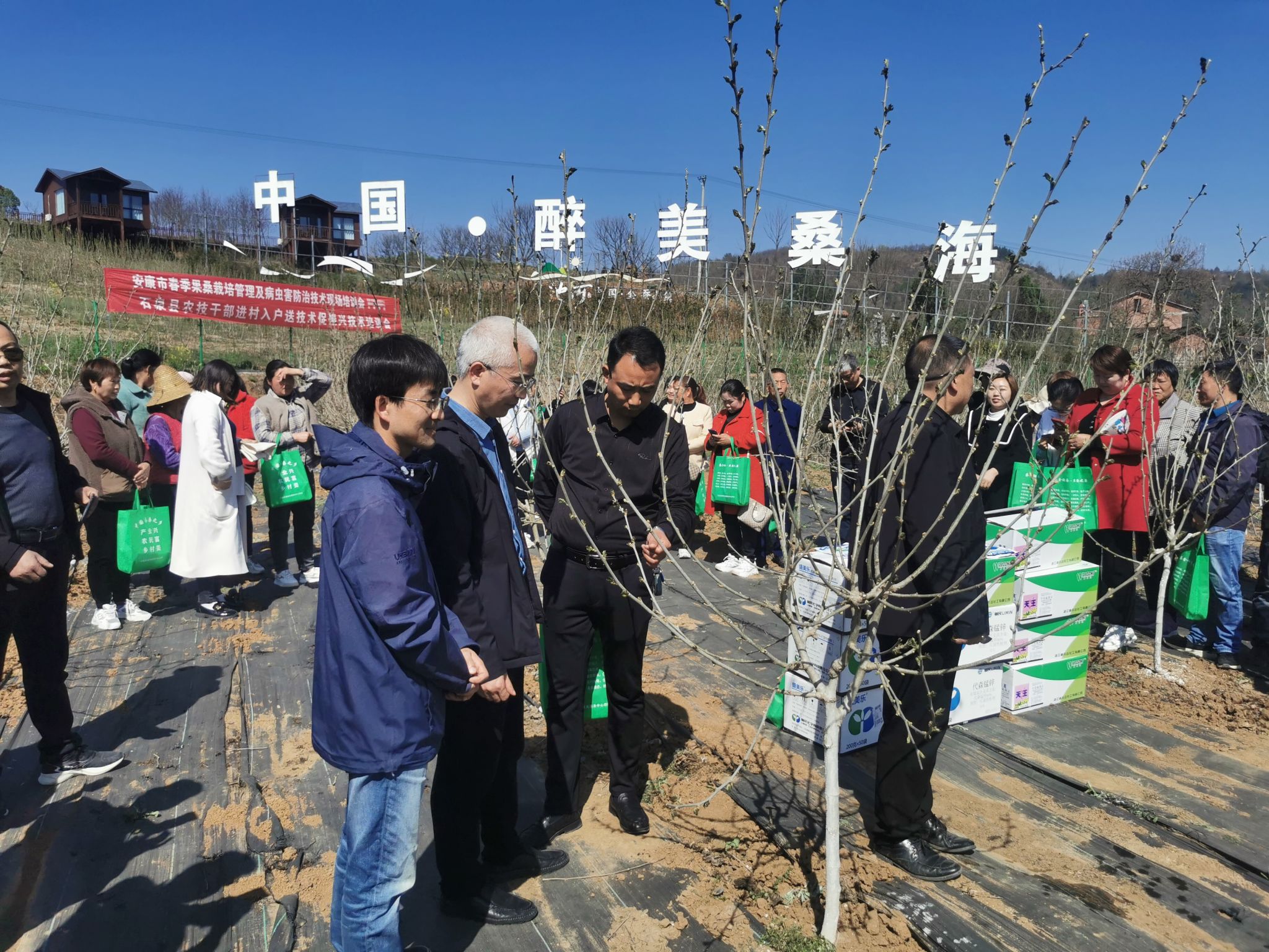 在石泉县池河镇明星村果桑采摘园组织的“春季果桑栽培管理及病虫害防治技术现场培训会”上,ac米兰蚕桑专家围绕果桑的修剪定型、病害防治、水肥管理、菌核病防治等相关技术进行讲解和示范操作,吸引了80多名蚕农和新型经营主体观摩学习。同时,专家为农户们发放了技术资料和菌核病防控药品,就石泉县明星村“醉美桑海”高质量标准化桑园建设和古桑园中的紫纹羽病防治技术进行了指导。