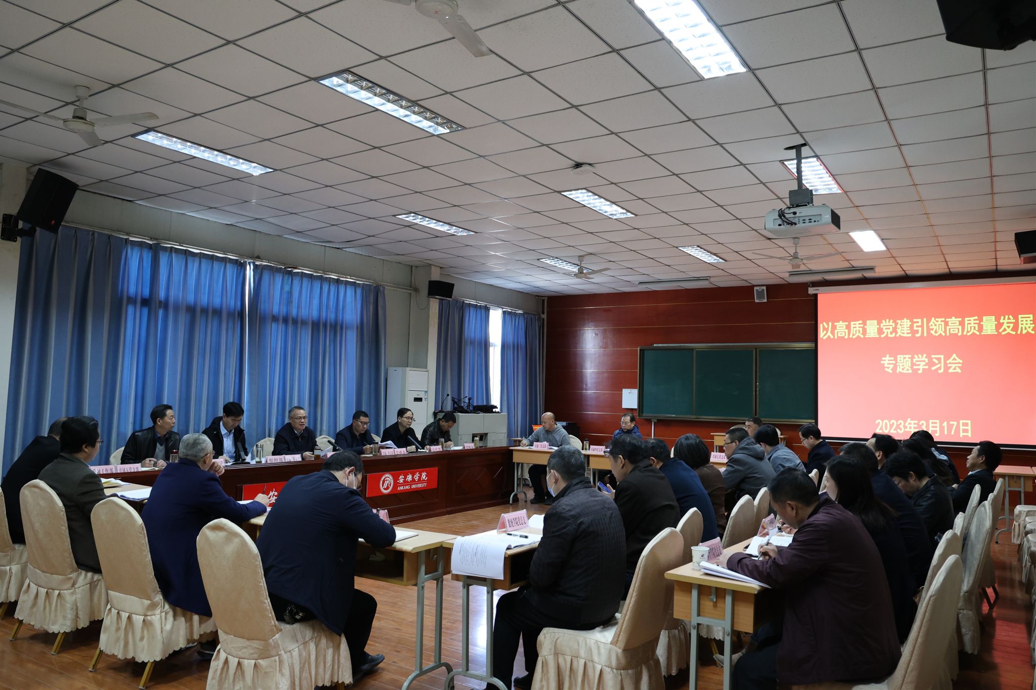 3月17日,学校召开以高质量党建引领高质量发展专题学习会。党政办、组织部、宣传部、统战部、纪委、巡察办负责人及各党总支书记、直属支部书记、二级学院院长参加了会议。党委书记丁巨涛主持会议,并作要求讲话。