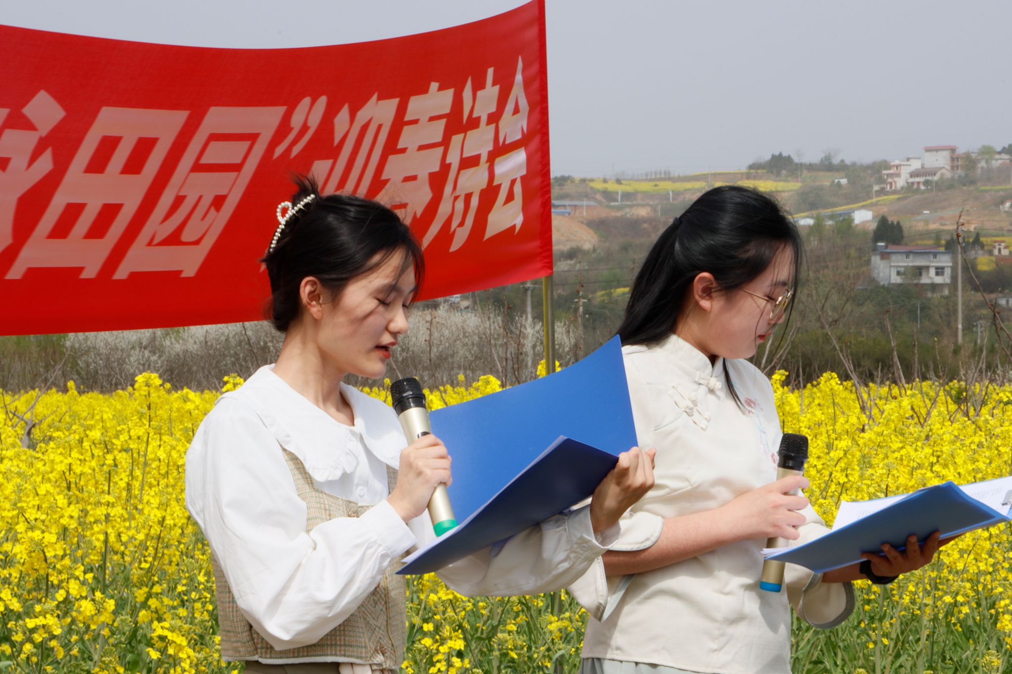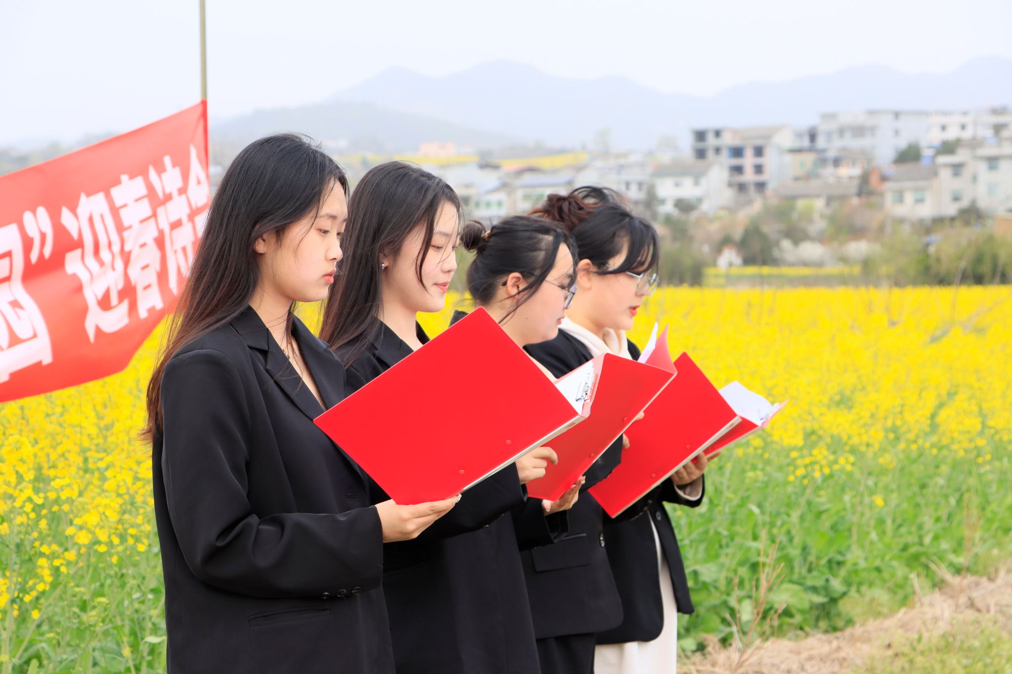 近日,ac米兰文学与传媒学院在张滩镇黄洋河畔油菜花田顺利举办了2023年迎春诗会。文传学院党总支书记芦伟、副书记杨海蓉及部分教师代表席了本次活动。活动由辅导员邹棠华组织,影视戏剧社承办,文传学院近70名学生参加了本次诗会。
