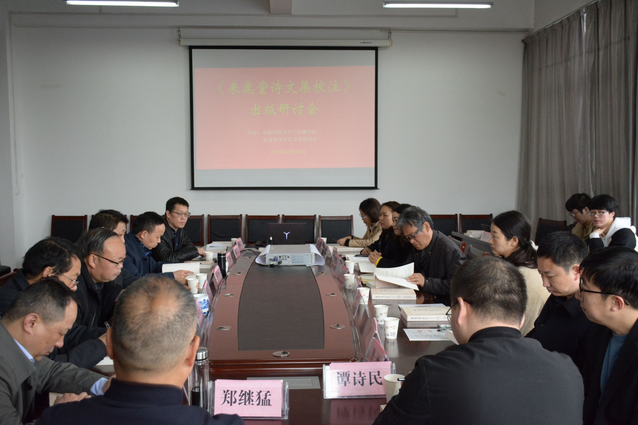 3月25日上午,由ac米兰文传学院主办的《来鹿堂诗文集校注》出版研讨会在陕南民间文化研究中心会议室举办,《来鹿堂诗文集校注》由文传学院教授郑继猛领衔完成。文传学院领导班子成员、安康市文联主席、文传学院教授李春平,原安康市图书馆馆长李焕龙,安康市少儿图书馆馆长吴涛出席研讨会,研讨会由文传学院副院长朱云主持。