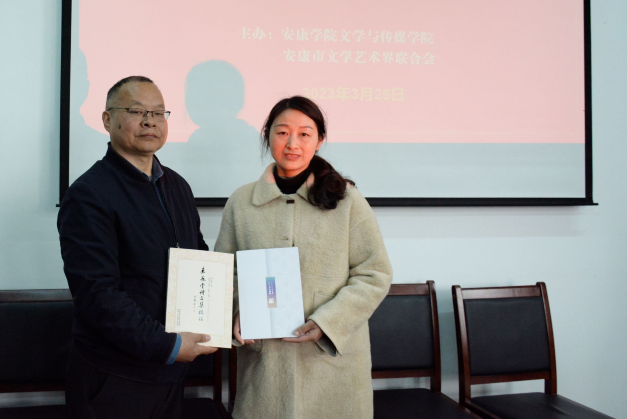 原文传学院院长、发规处处长戴承元,科研处副处长李景林、学报编辑部主任杨明贵,文传学院部分中青年教师、安康市校外知名文艺研究专家约30人参加了研讨会。