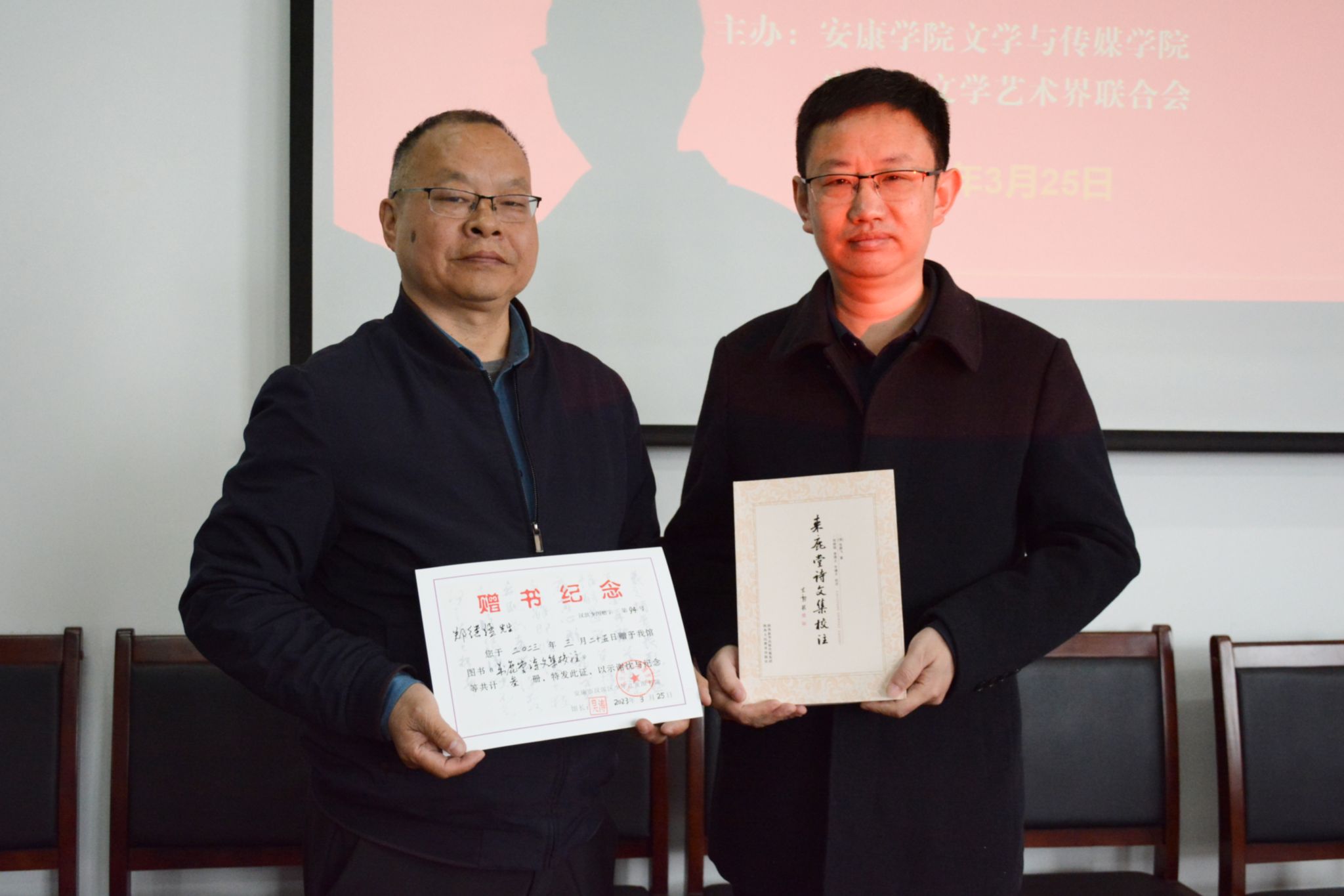 随后,郑继猛教授向安康市图书馆、安康市少儿图书馆及各区县图书馆捐赠《来鹿堂诗文集校注》共计20本,吴涛向郑继猛颁发了捐赠证书。