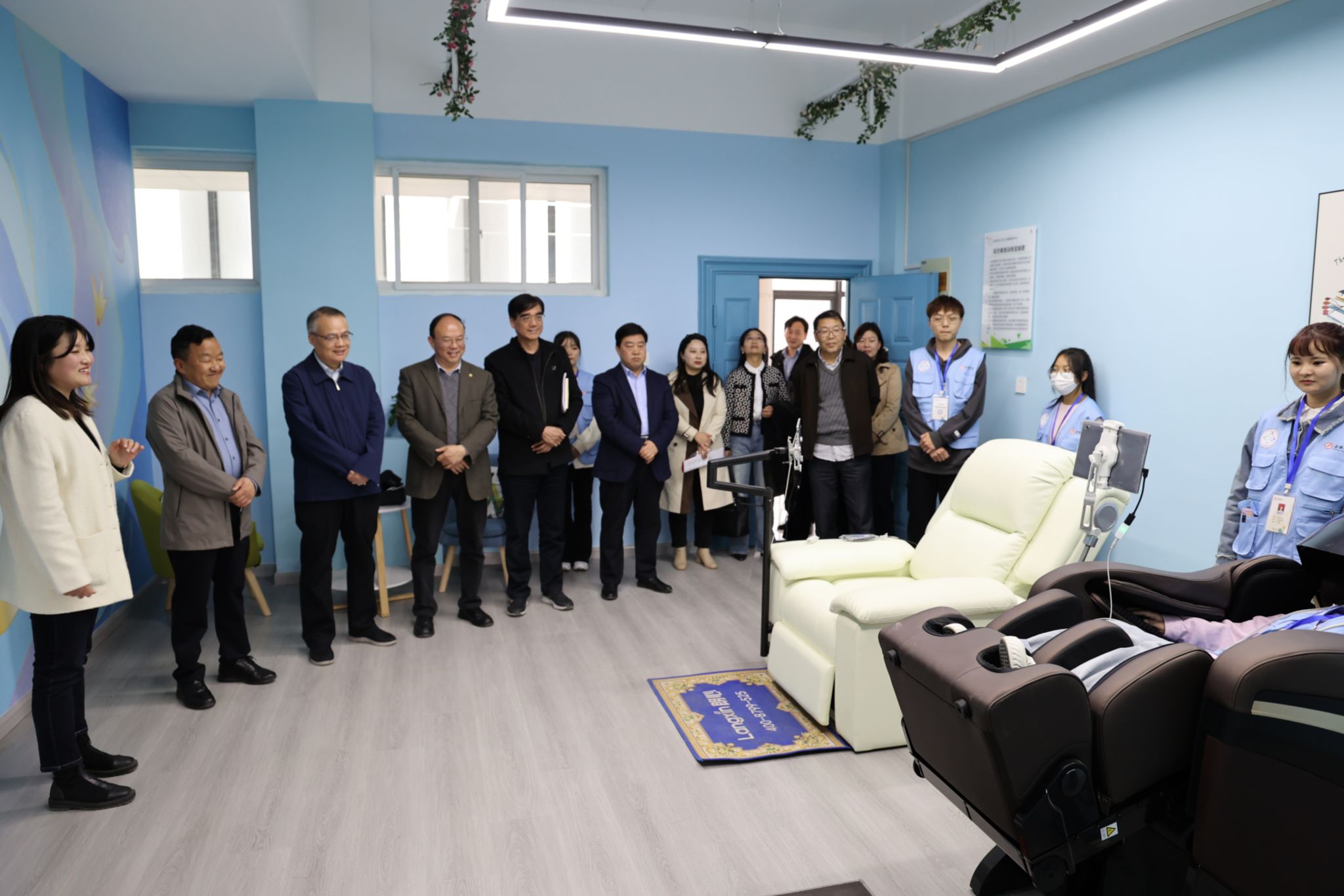 启动仪式后,与会领导和嘉宾参观大学生心理健康中心,体验了专业、科学的心理健康教育设施设备,并对ac米兰大学生心理健康教育工作提出建设性的指导意见。