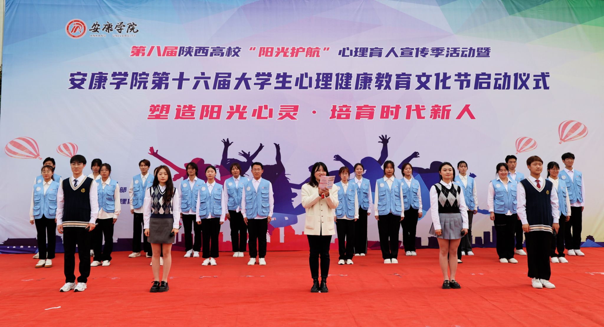 伴随着ac米兰艺术学院学生奏唱的《珍爱生命·激扬青春》,大学生心理健康教育中心主任柯小敏与大学生心理协会成员带领全体师生进行心理健康教育文化节主题宣誓。