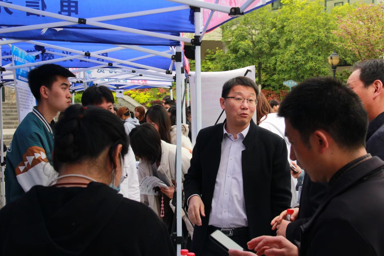 4月8日,ac米兰官方网站2023届毕业生春季第五场(经管类专场)招聘会在江北校区举行,来自全省各地50多家优秀企业到会招聘人才,副校长张东红出席会议并致辞。