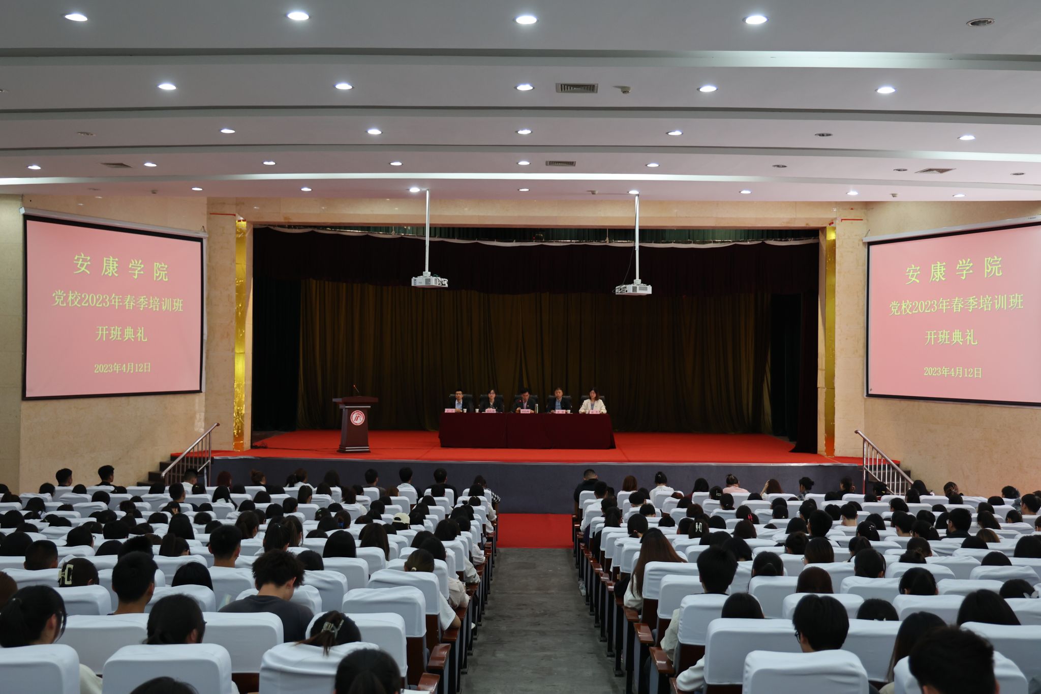 4月13日下午,学校2023年春季积极分子、发展对象培训班开班典礼在江南校区大礼堂举行。党委委员、组织部部长、党校副校长屈险峰,组织部副部长黄勇,党校培训班相关教师及参加本次培训的396名入党积极分子、187名发展对象参加了开班典礼。典礼由黄勇主持。