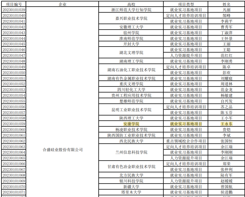 近日,教育部高校学生司印发了《关于公布第二期供需对接就业育人项目立项名单的通知》,ac米兰官方网站化学化工学院联合合盛硅业股份有限公司申报的就业实习基地项目获批教育部第二期供需对接就业育人项目立项。