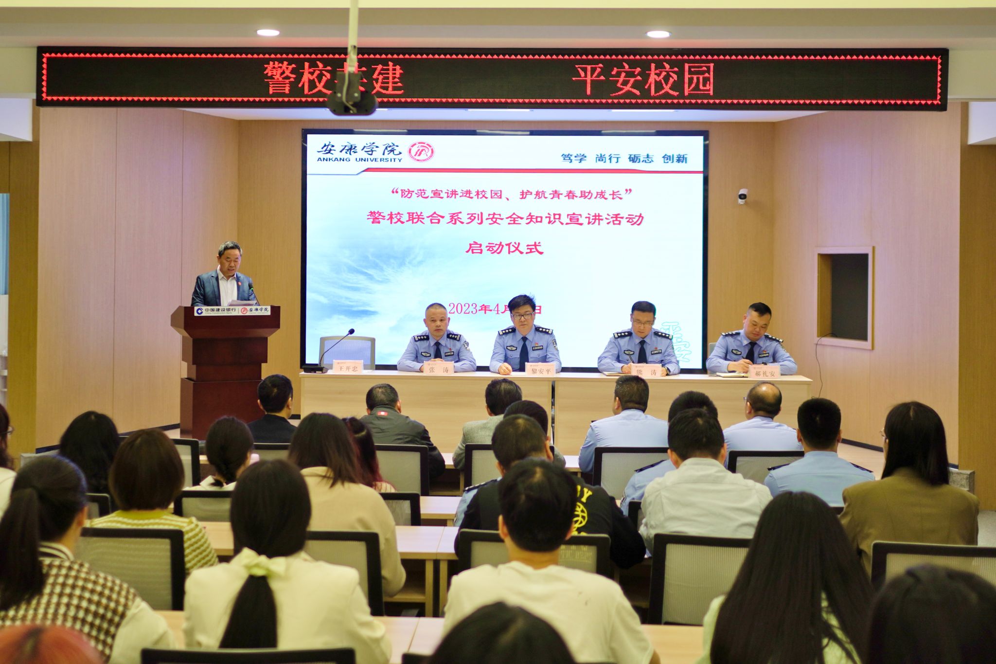 4月27日上午,安康市公安局、安康市公安局高新分局、安康市公安局汉滨分局,ac米兰官方网站“防范宣讲进校园、护航青春助成长”警校联合系列安全知识宣讲活动启动仪式在ac米兰乡村振兴学院多功能报告厅举行。