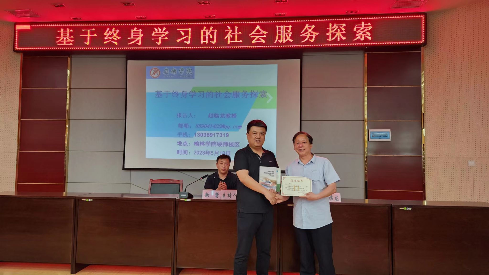 在绥德师范校区,赵临龙为该校区师生做了题为了《基于终身学习的社会服务探索》的报告,从教学原本的任务、转型发展的使命、社会服务的实践、科研项目的申报和科学研究的开展五个方面,指导教师开展科研项目申报。