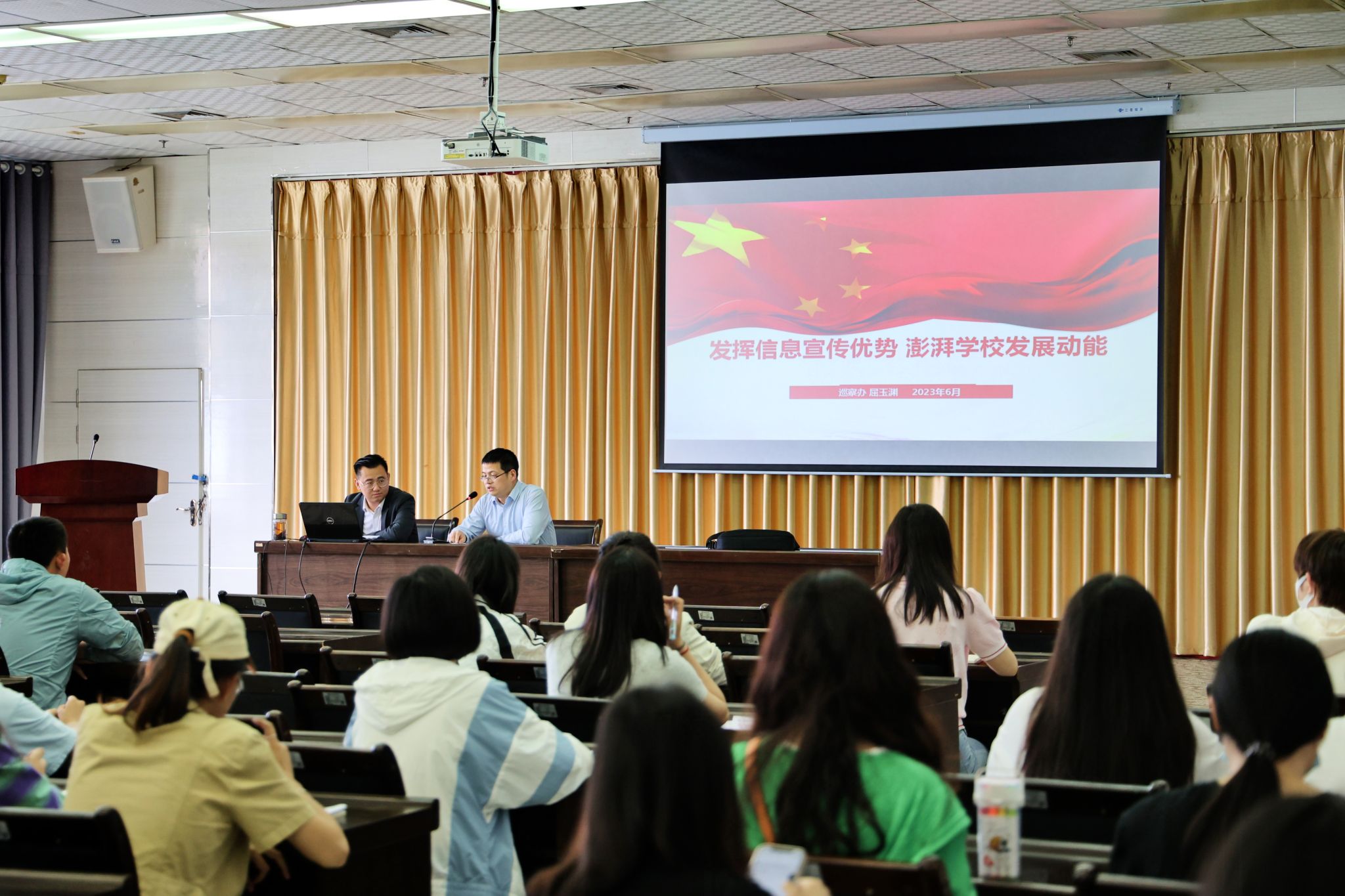 6月7日下午,新闻宣传与舆情引导处置系列培训之“发挥信息宣传优势,澎湃学校发展动能”在江南校区图书馆六楼报告厅举行,本次系列培训圆满收官。全校各二级单位负责新闻宣传和舆情工作的分管领导、宣传委员、网评员、宣传工作骨干师生参加了培训。