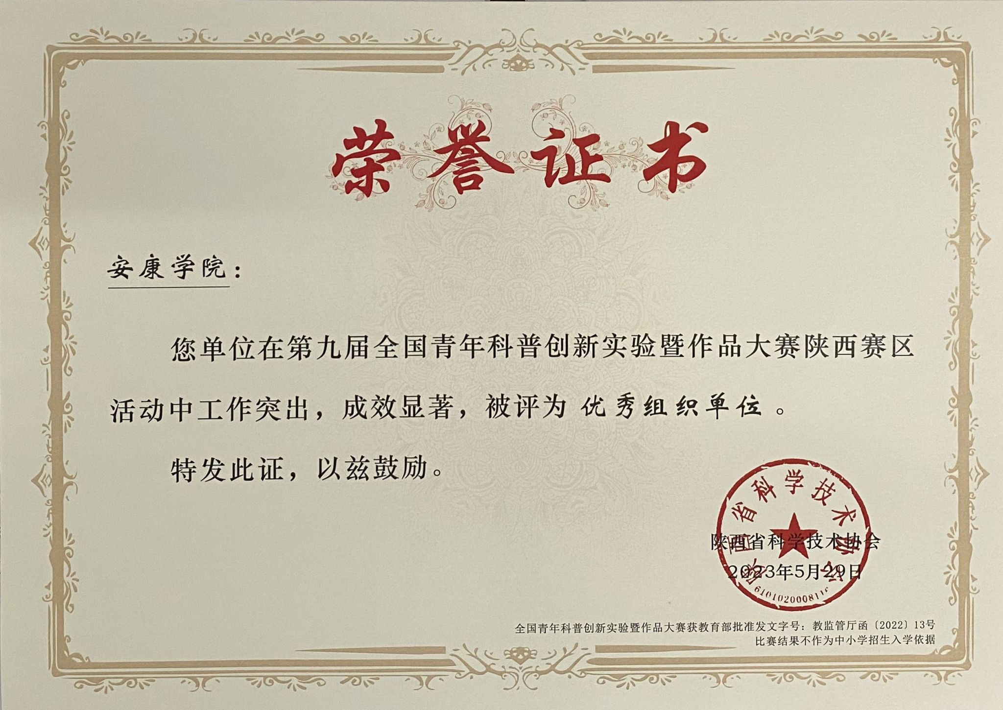 近日,根据陕西省科协《关于第九届全国青年科普创新实验暨作品大赛陕西赛区获奖情况通知》,在此次大赛ac米兰共有6组学生喜获佳绩,其中二等奖1项,三等奖5项,学校被评为第九届全国青年科普创新实验暨作品大赛陕西赛区优秀组织单位。