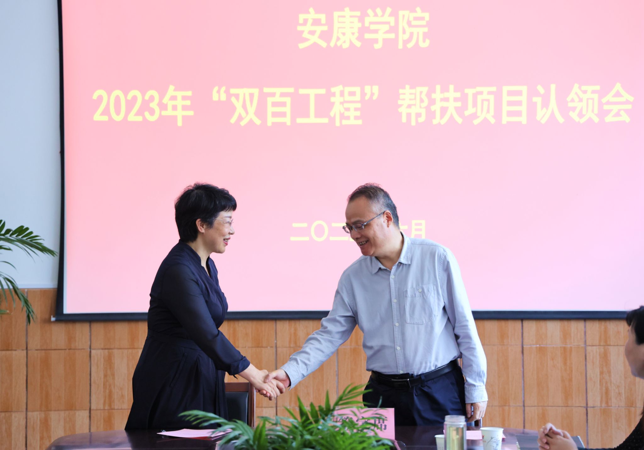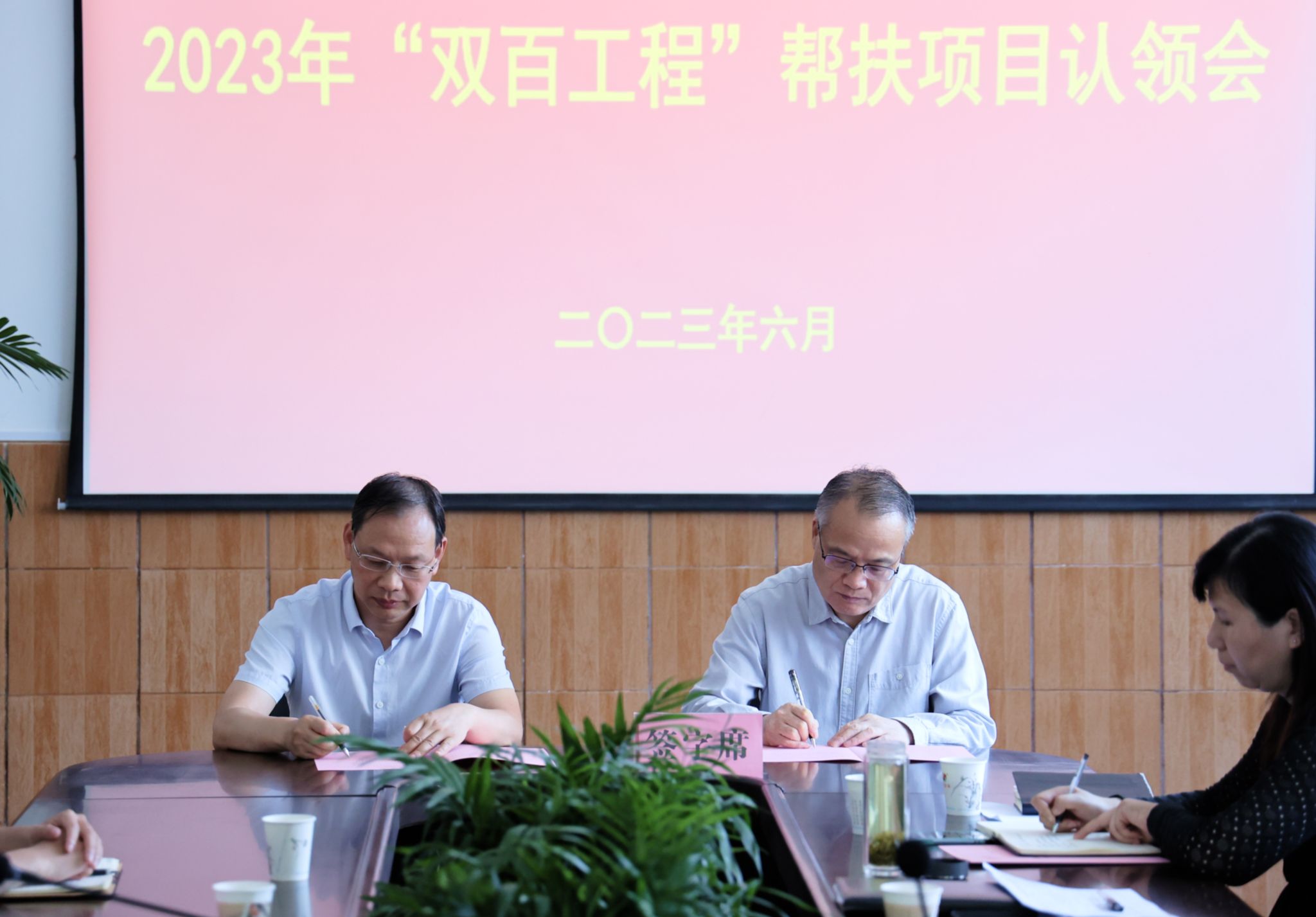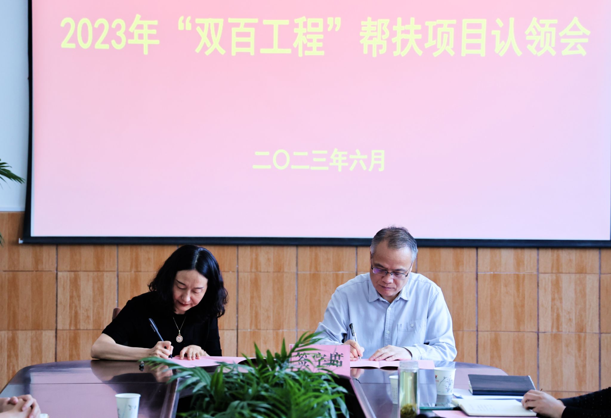 丁巨涛代表学校巩固拓展脱贫攻坚成果同乡村振兴有效衔接工作领导小组与承担帮扶任务的项目负责人代表签订了项目认领书。