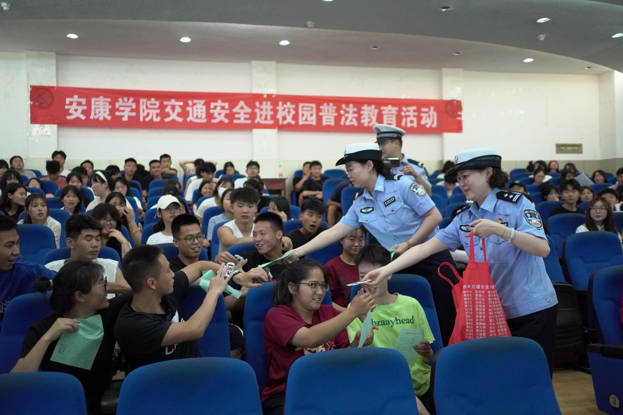 近日,ac米兰联合市公安局汉滨分局交警大队、高新分局交警大队,分别在江南、江北校区开展交通安全进校园活动。各二级学院学生会干部、班干部、安全信息员约500余人参加了活动。