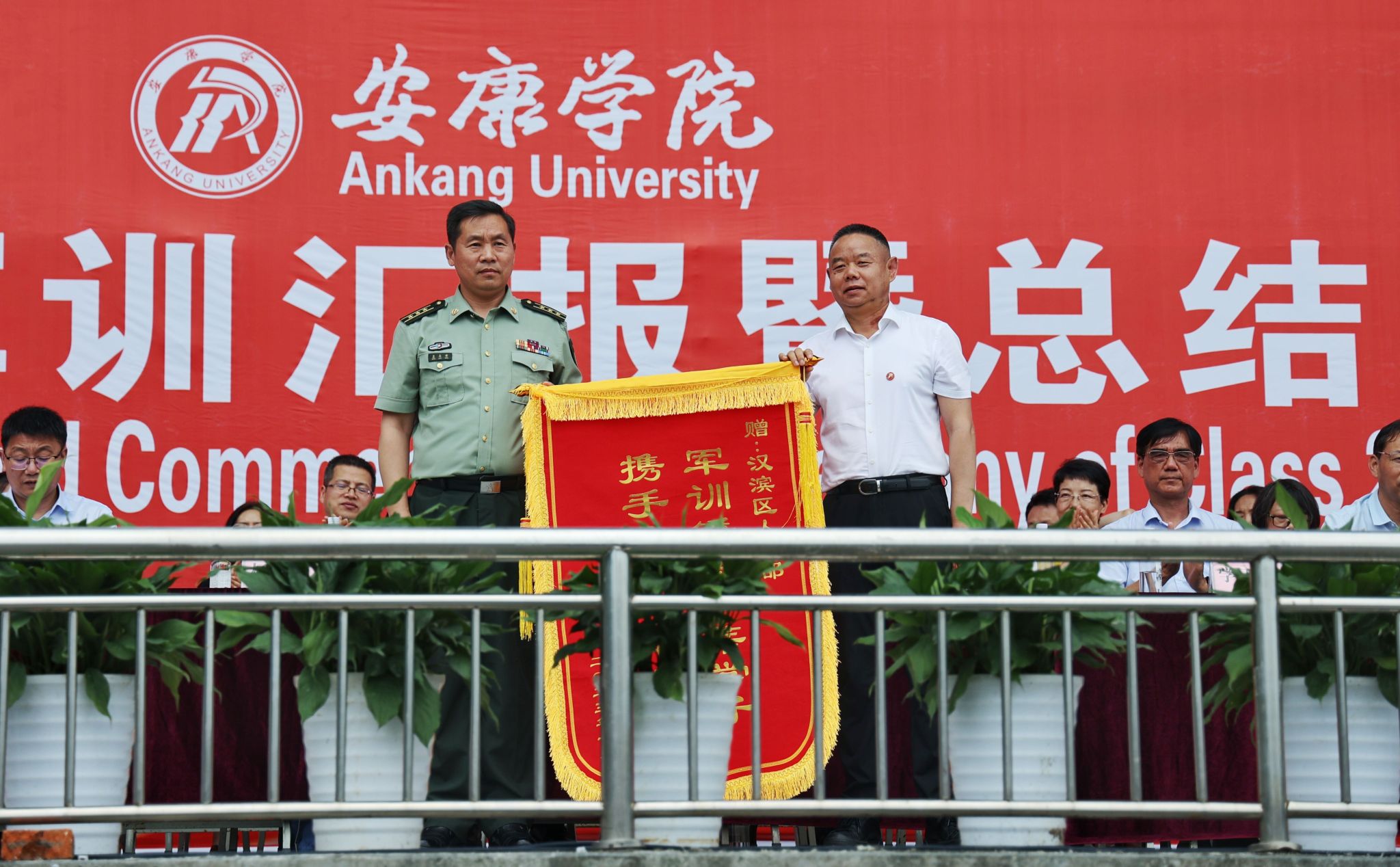 安永强代表学校向协调ac米兰本次军训的汉滨区人武部赠送了锦旗。