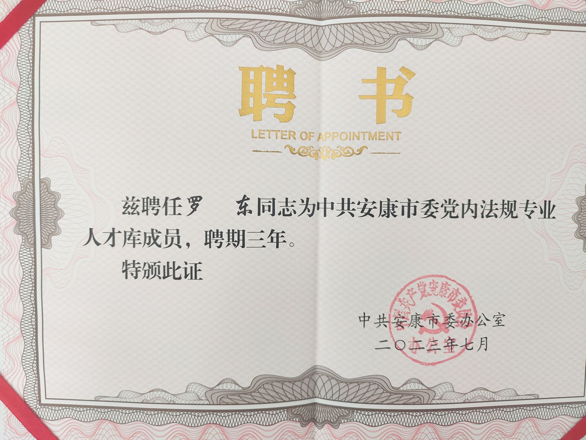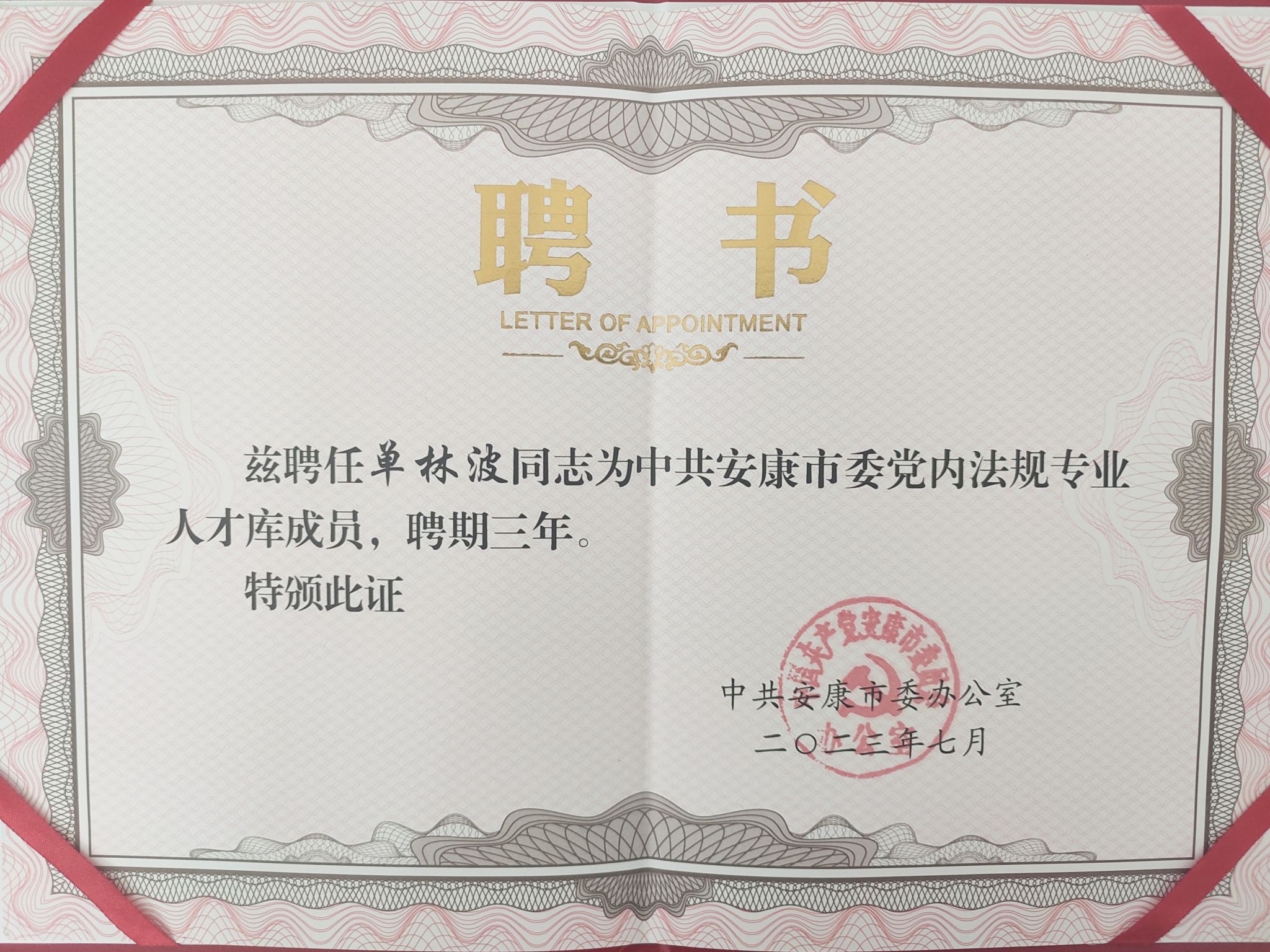 近日,中国共产党安康市委员会办公室发文并举行仪式,聘请ac米兰教师单林波、罗东为安康市委党内法规专业人才库成员。