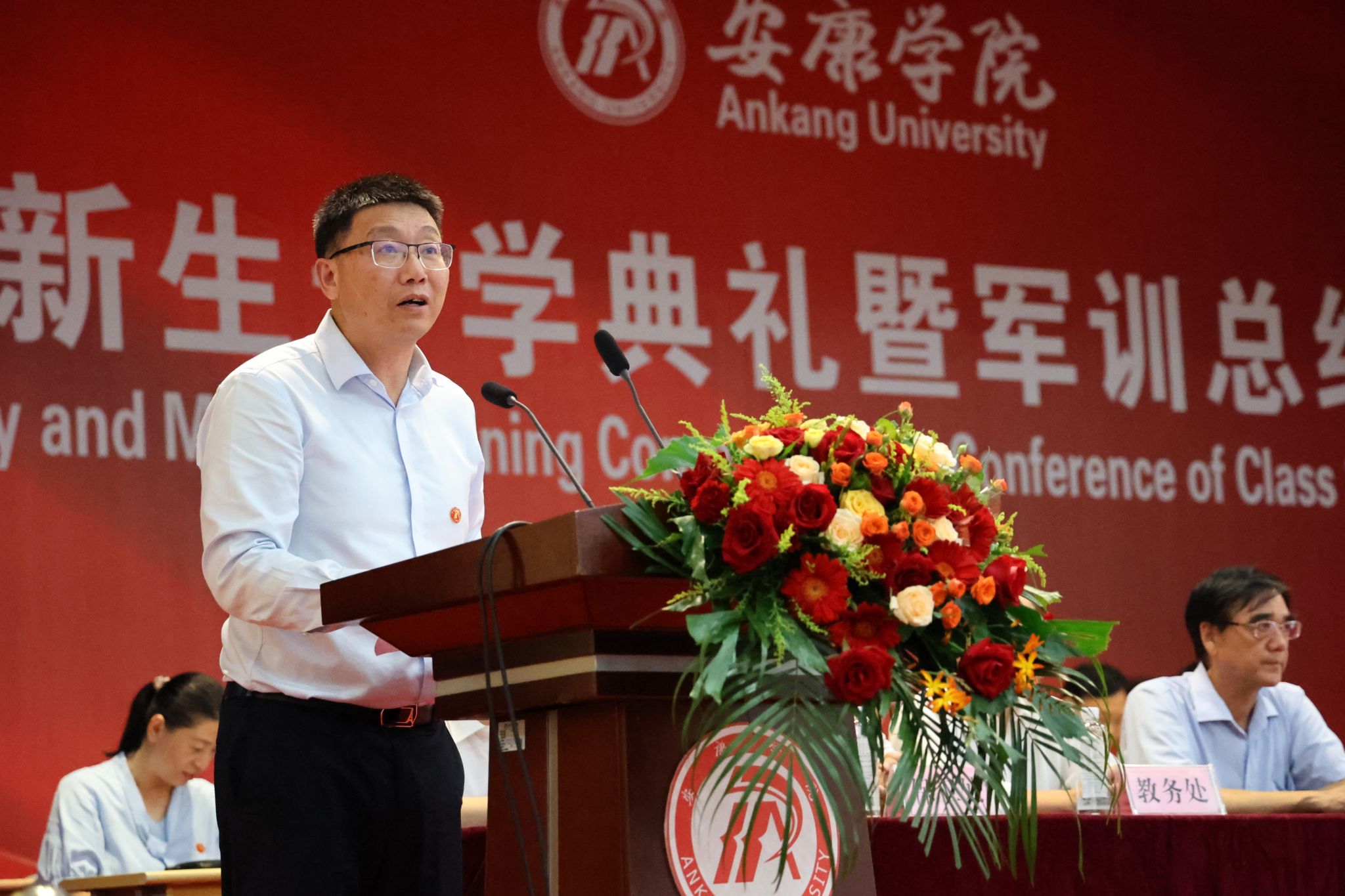9月11日,ac米兰2023级新生开学典礼暨军训总结表彰大会在江南校区大礼堂隆重举行。学校校长钟生海,党委副书记、纪委书记、监察专员安永强,副校长张东红,武警安康支队中校副政治委员马冠群,各二级学院院长、党总支书记、相关职能部门负责人等出席大会,大会由张东红主持。