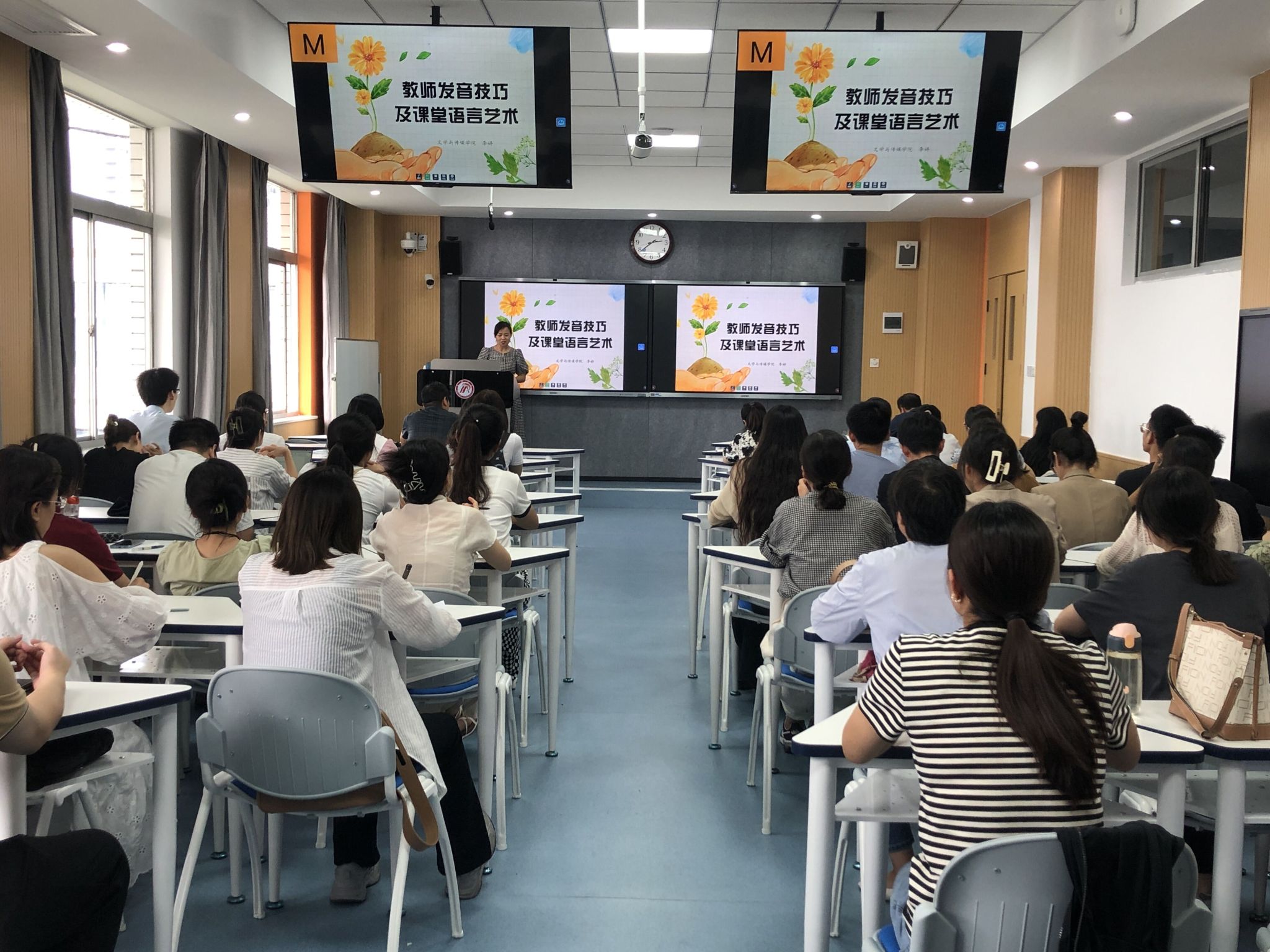 文学与传媒学院副院长李婷以《教师发音技巧及课堂语言艺术》为题,运用实际课堂教学案例介绍了“吐字”和“归音”的区别,分享了“气息训练”方法,并与参训教师深度互动,现场模拟演练,受到一致好评。
