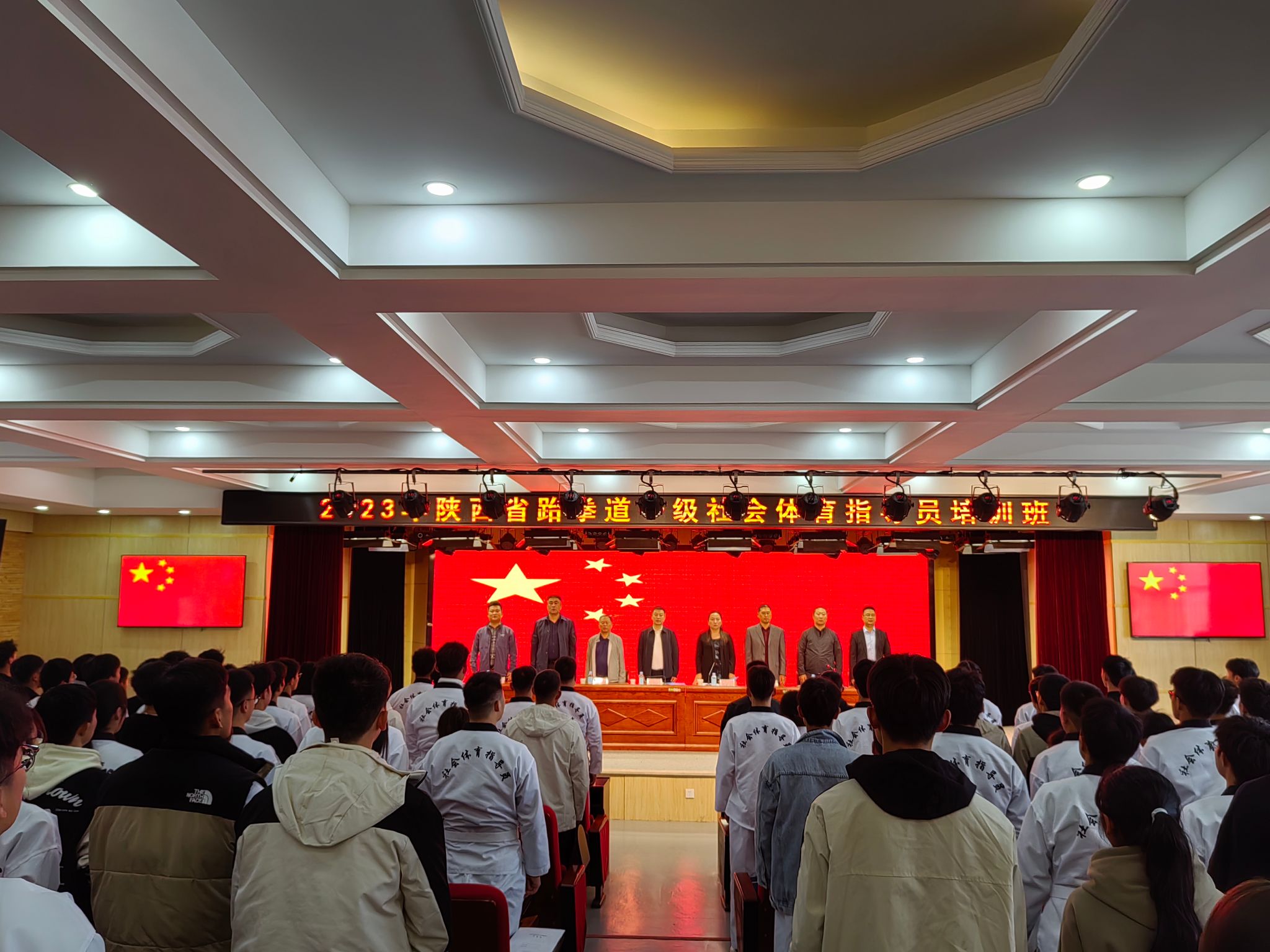 10月21日,2023陕西省跆拳道一级社会体育指导员培训班在ac米兰官方网站开班。陕西省拳击跆拳道运动管理中心主任贺松林,ac米兰官方网站体育学院领导班子成员、教务处、招就处相关负责同志,陕西省跆拳道协会副主席秦晓亮、安康市体育运动服务管理中心主任刘平平等领导出席开班仪式,开班仪式由省拳击跆拳道运动管理中心副主任李涛主持。ac米兰体育学院230名学员参加培训。