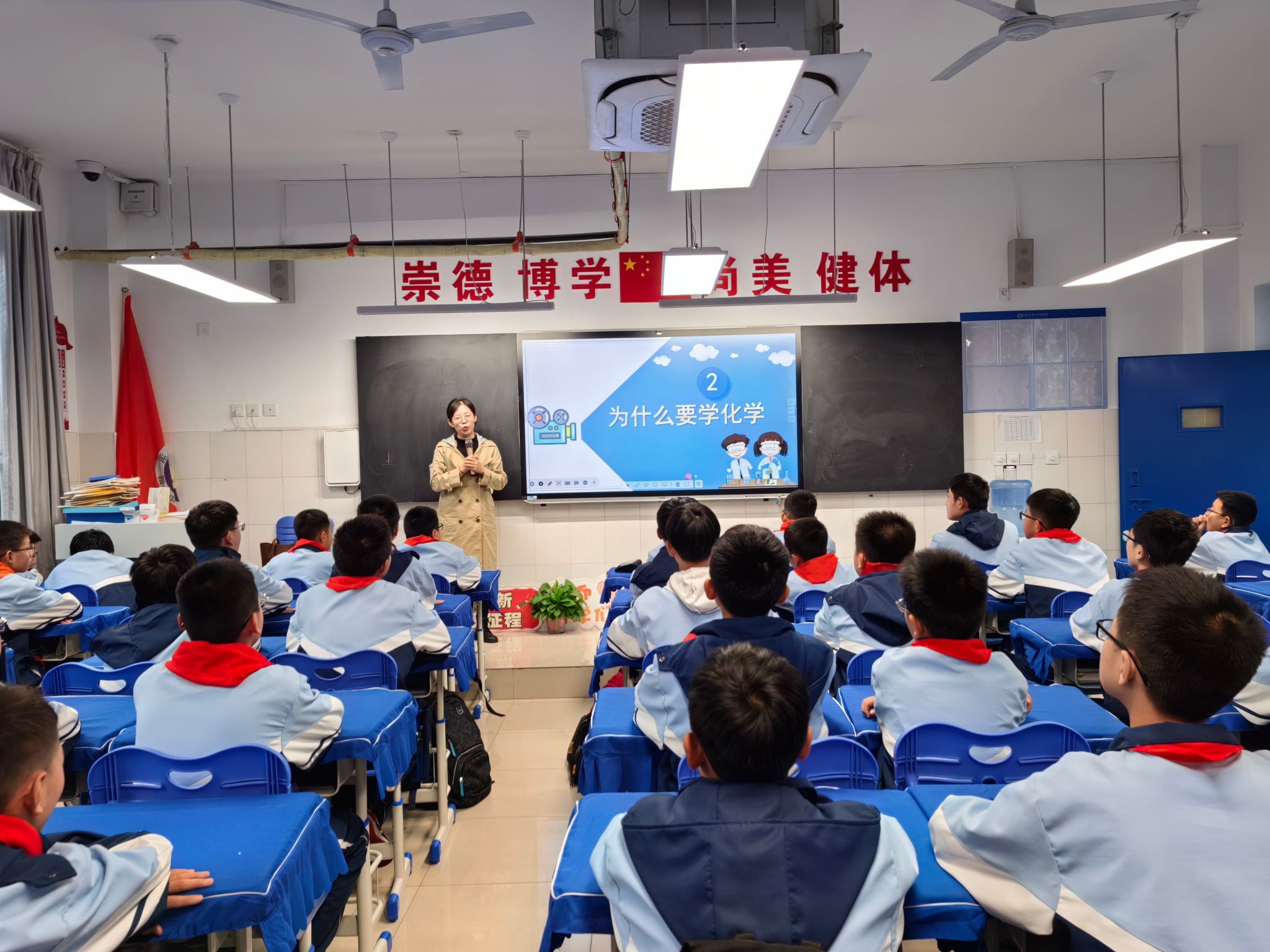 近日,ac米兰化学化工学院“化学之光”科普团受邀来到汉滨初级中学开展科普宣讲进校园活动。汉滨初级中学大桥路校区领导、七年级50余名师生参加本次活动。本次活动由汉滨初级中学大桥路校区执行校长全东主持。