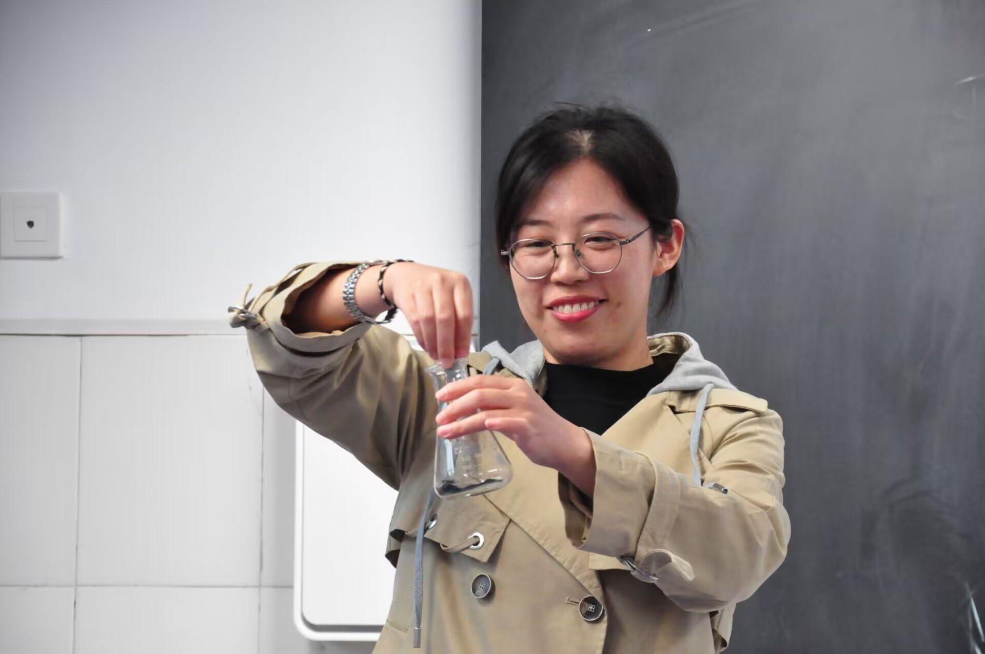活动中,科普团主讲王雪博士为大家做了题为《可植入的生物燃料电池》的专题讲座。王雪从“燃料电池是什么”“ 什么是生物”等问题引入,通过讲述生物燃料电池生动有趣的案例,适时引入化学相关知识,解答学生最感兴趣的化学问题。王雪用生动活泼的语言,深入浅出地为在场的学生们列举生活中有趣的化学反应,演示其中的实验反应,讲解背后的科学原理,激发了学生们对科学的热爱与兴趣,赢得了阵阵掌声。