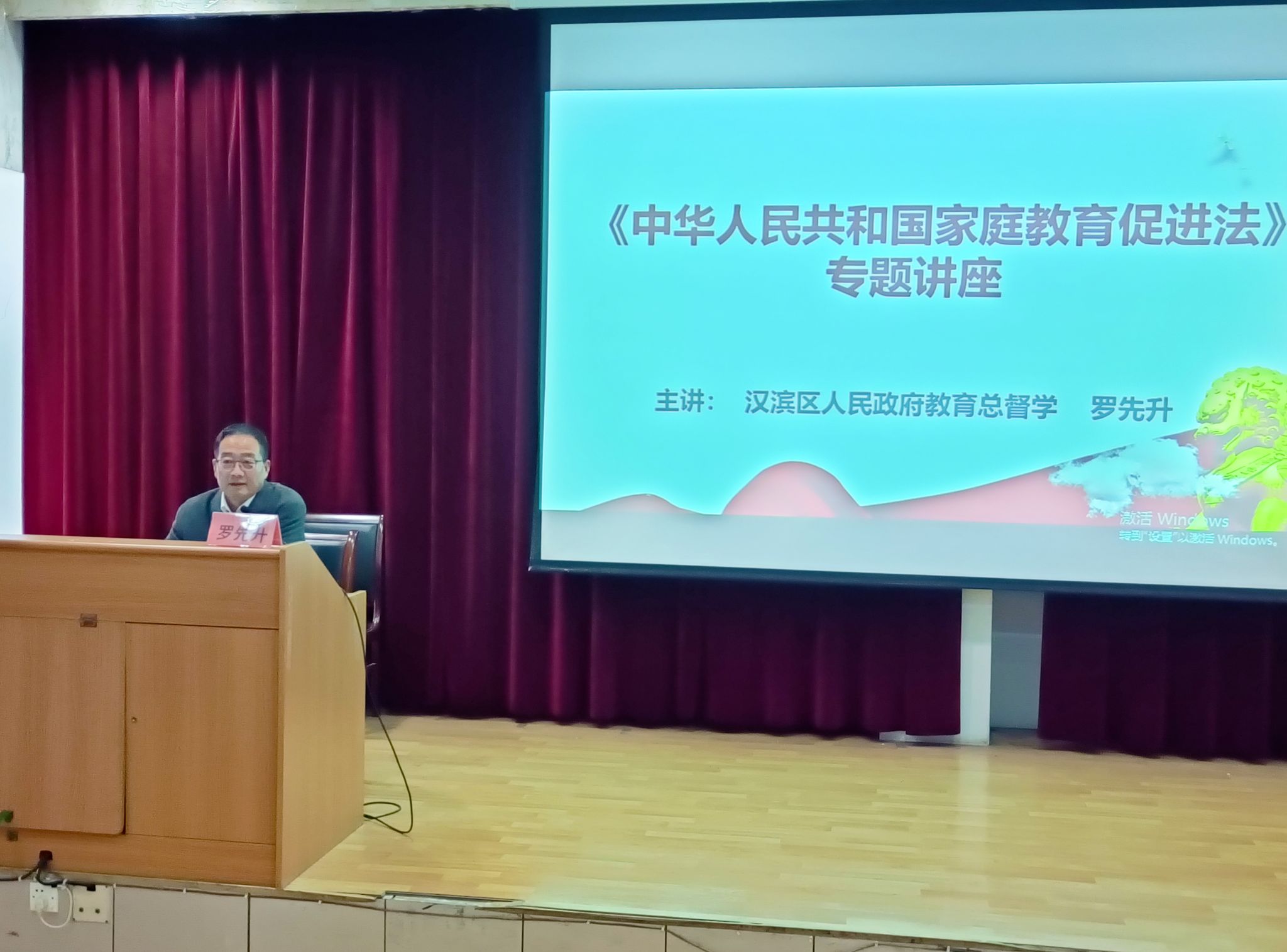 罗先升以《中华人民共和国家庭教育促进法》解读为题,从该部法律出台的背景与意义、教育的起点与问题根源以及教育教学改革成败的关键点等方面,结合家庭教育案例与教育教学改革所面临的焦点、痛点做了一场内容丰富、生动鲜活、引人深思的讲座。